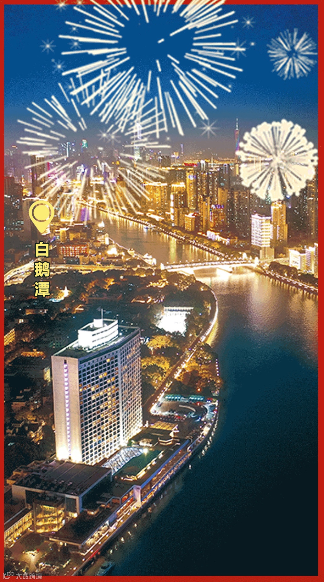 海珠广场是新中国成立后广州巨大发展变化的见证者,也是广州丰富的人文历史的重要载体,媒体立面以缤缤广场和广州宾馆作为主要演艺载体,已经演绎过祖国华诞、羊城传说、岭南华彩、海丝文化、艰难探索、改革开放等场景,画面整体美观大方,体现出了历史感和故事性。