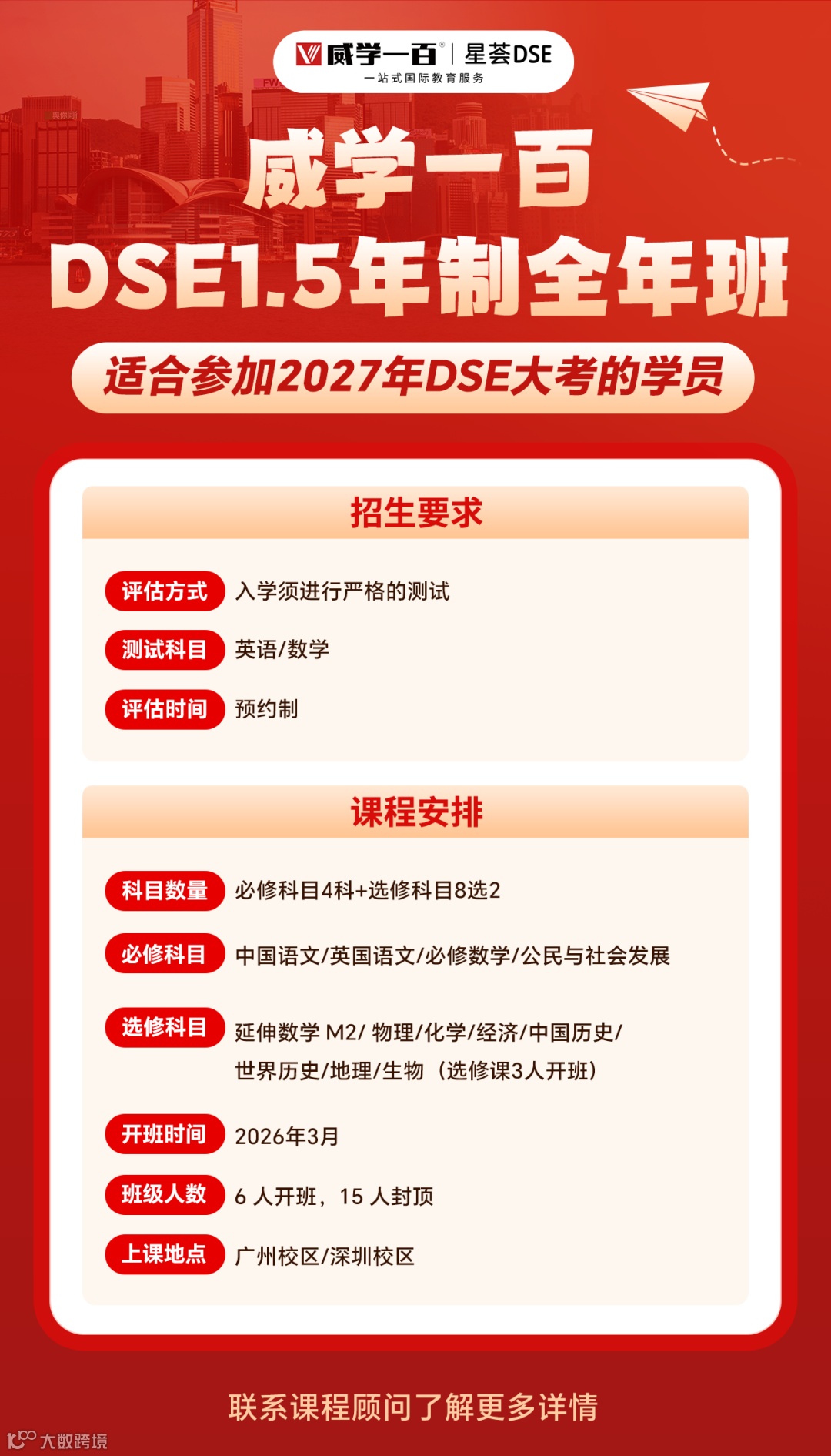 计划备战2027年DSE大考的同学们抓紧联系老师报名,抢占席位!加入我们,一起开启高效备考新篇章!