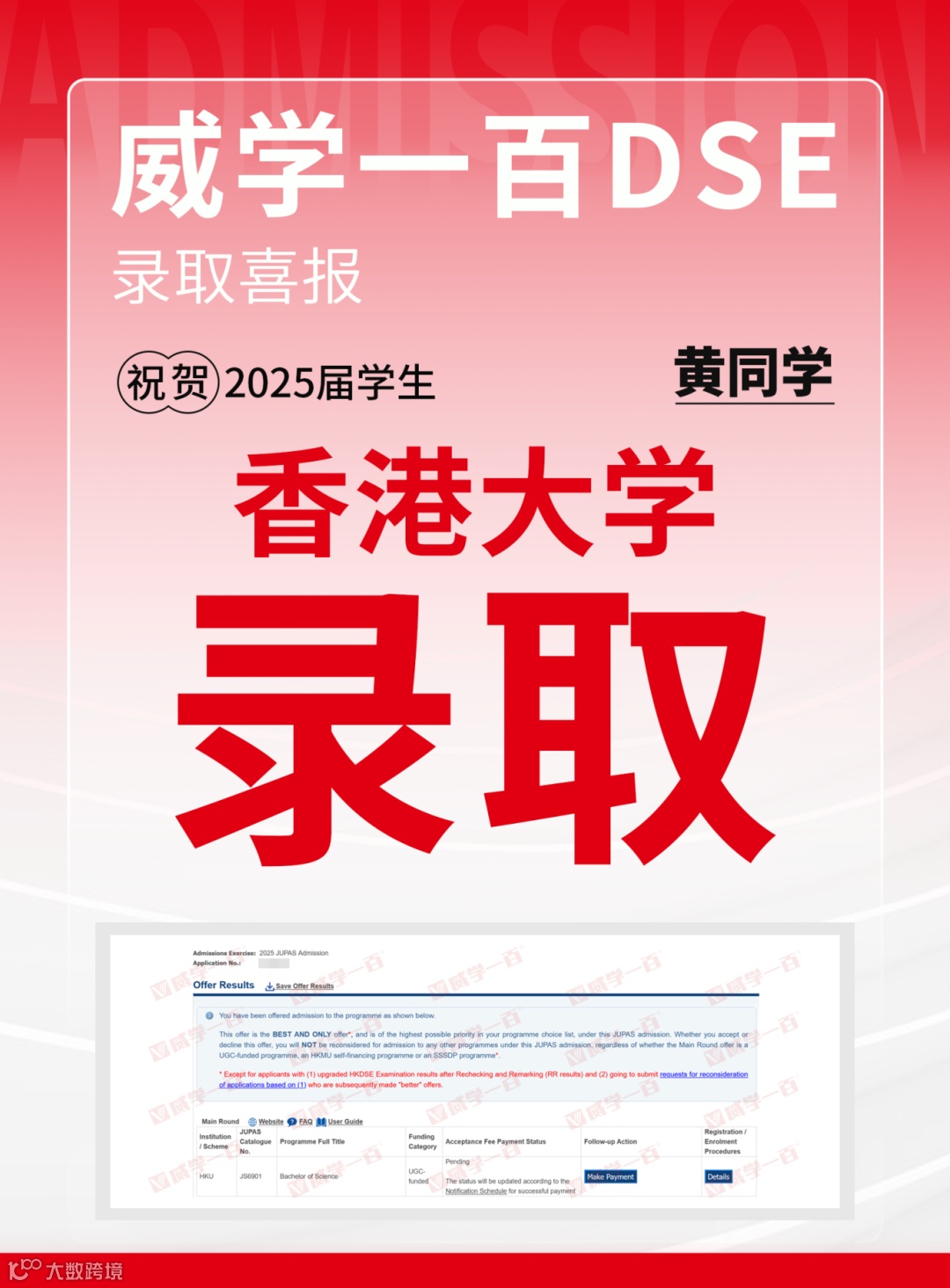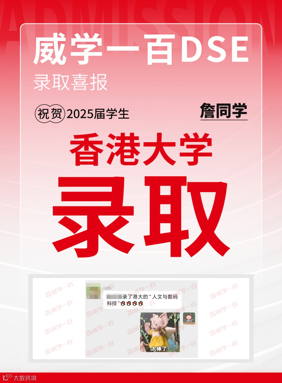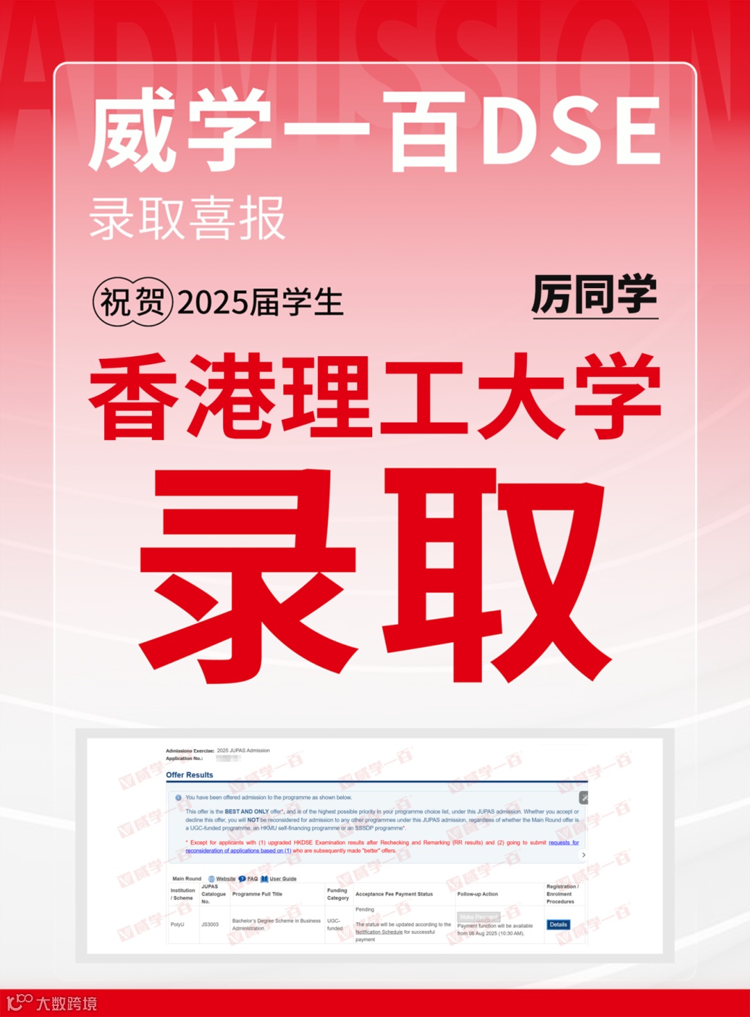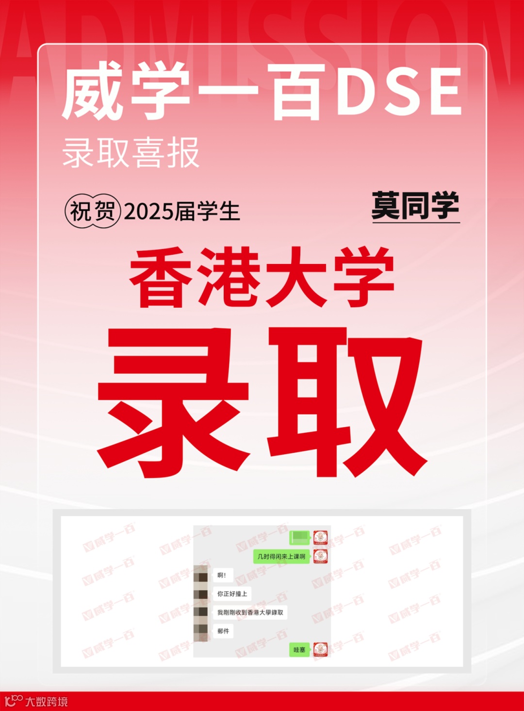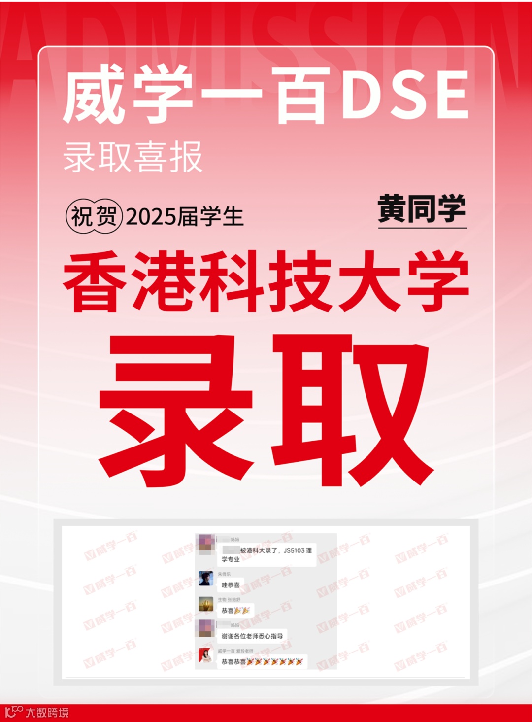 恭喜所有港前五录取学员!愿大家在新的求学旅程中乘风破浪、绽放光彩。未来,威学一百将继续深耕DSE教学,助力更多学子圆梦名校!