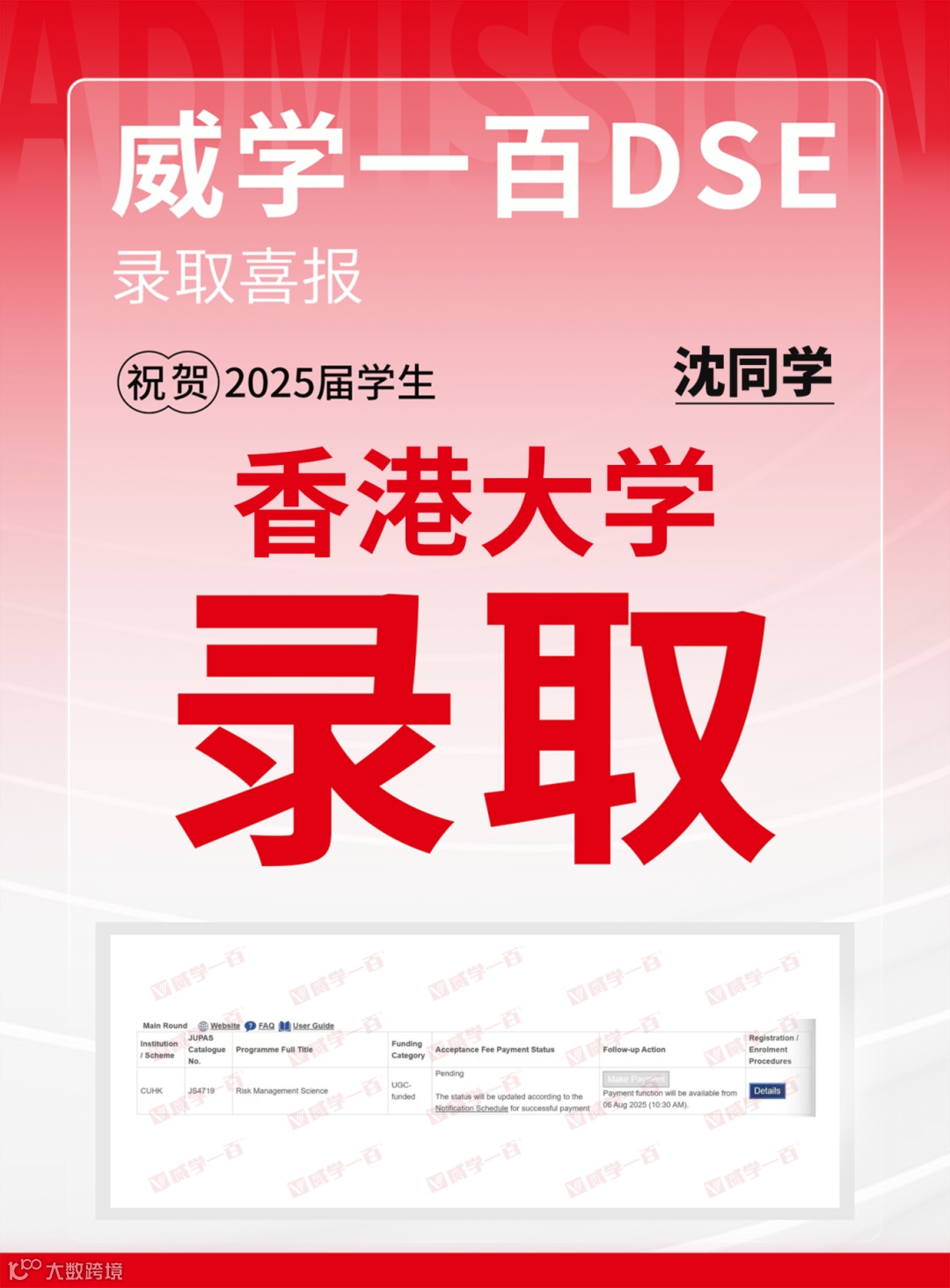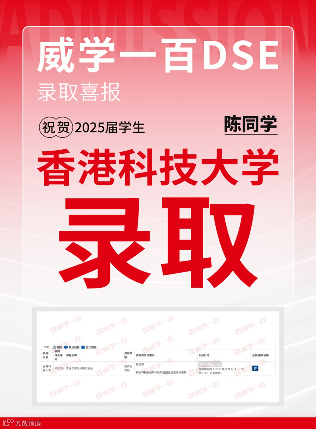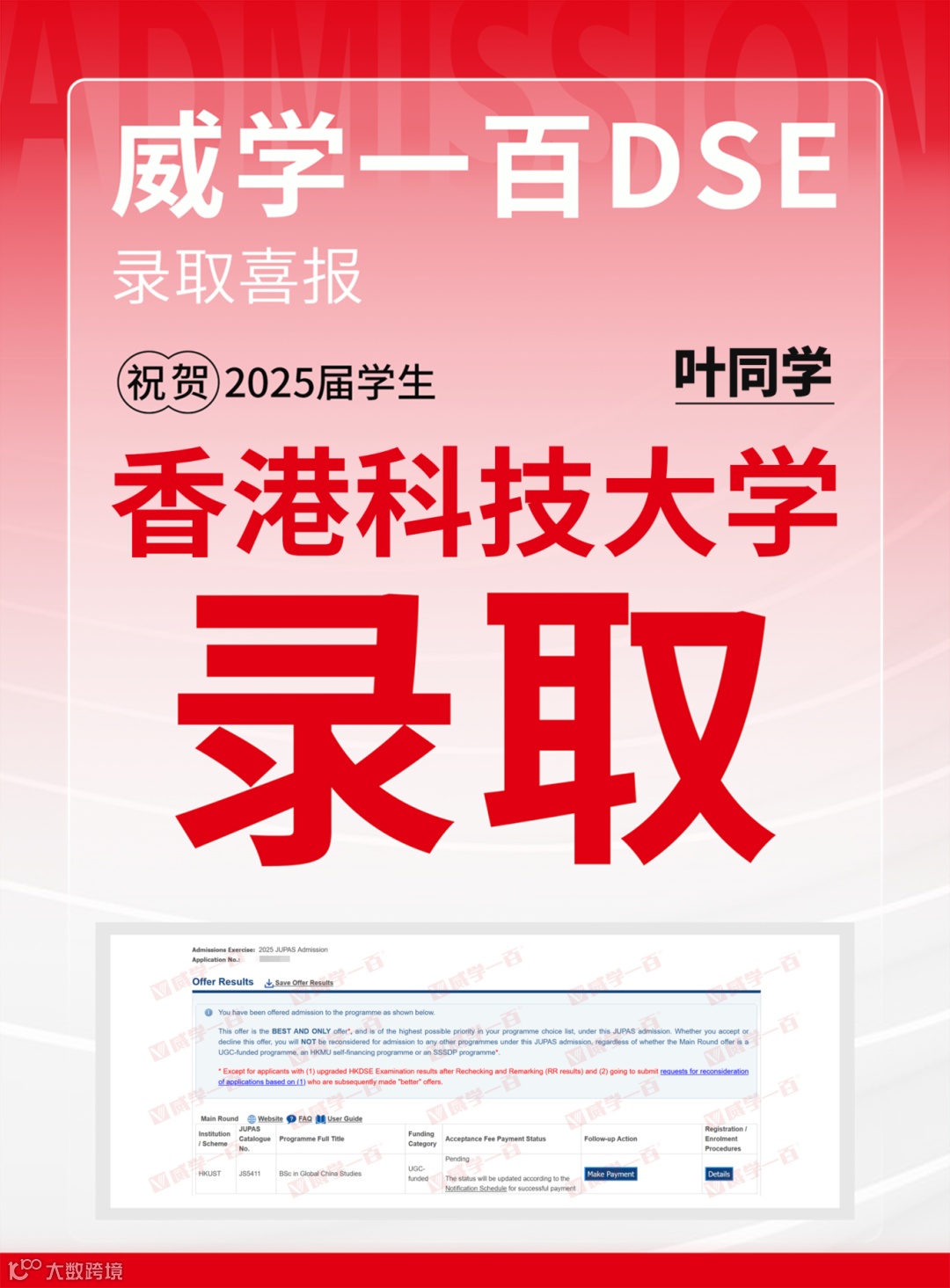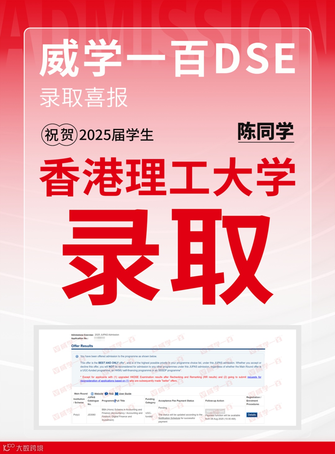 恭喜所有港前五录取学员!愿大家在新的求学旅程中乘风破浪、绽放光彩。未来,威学一百将继续深耕DSE教学,助力更多学子圆梦名校!