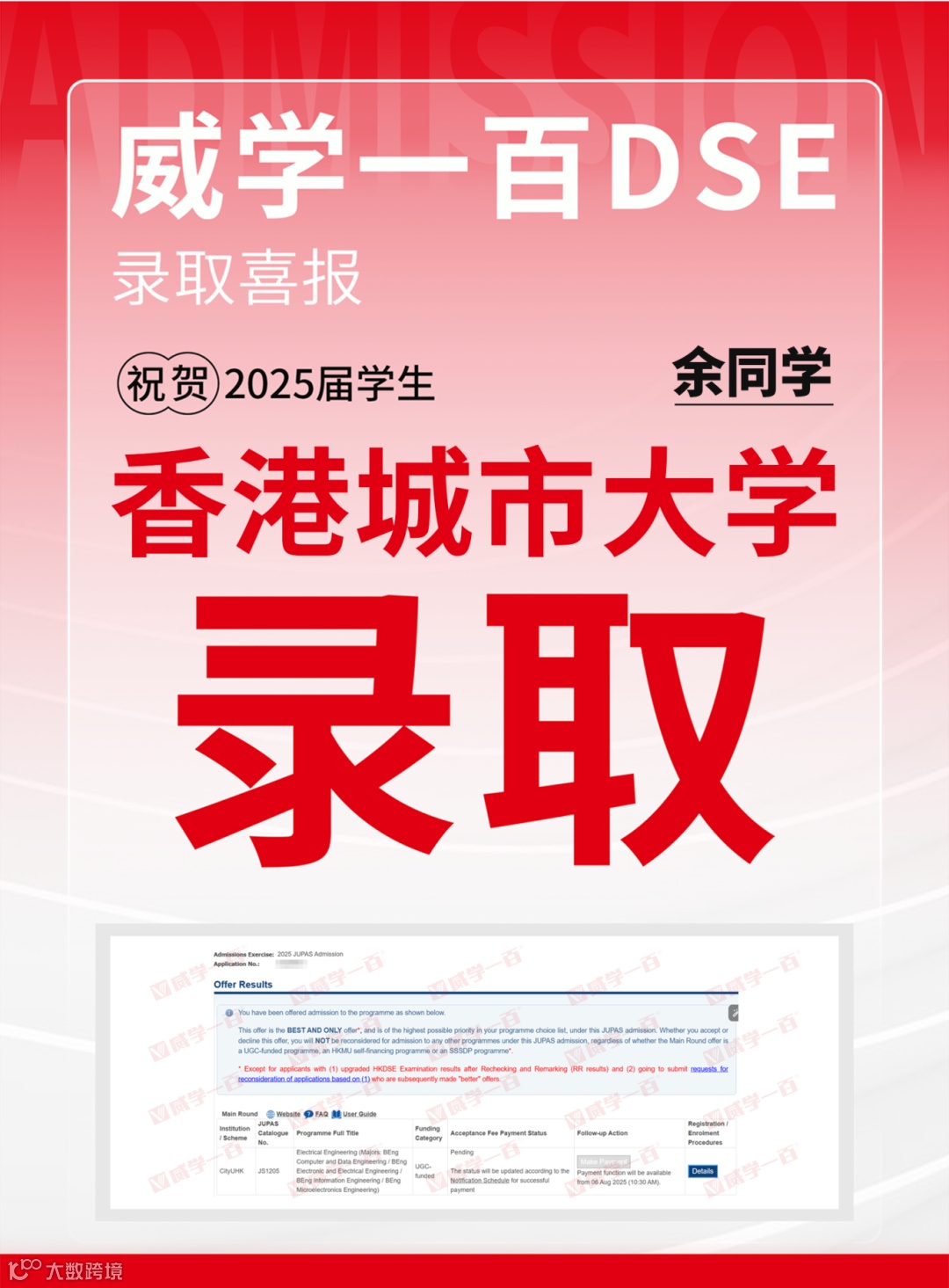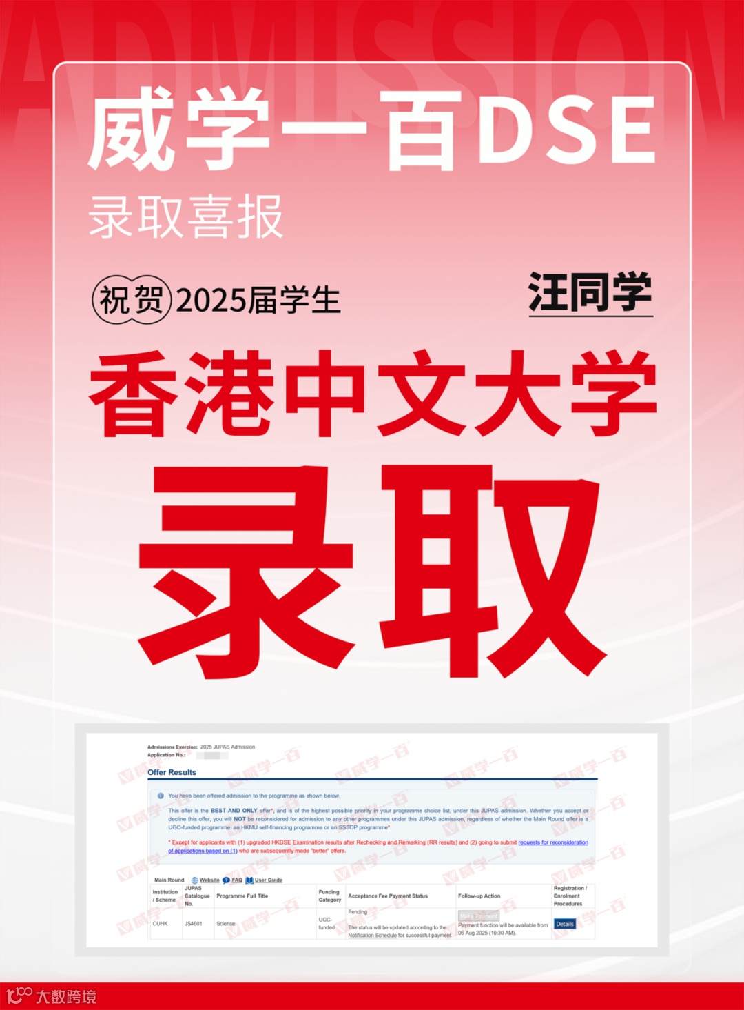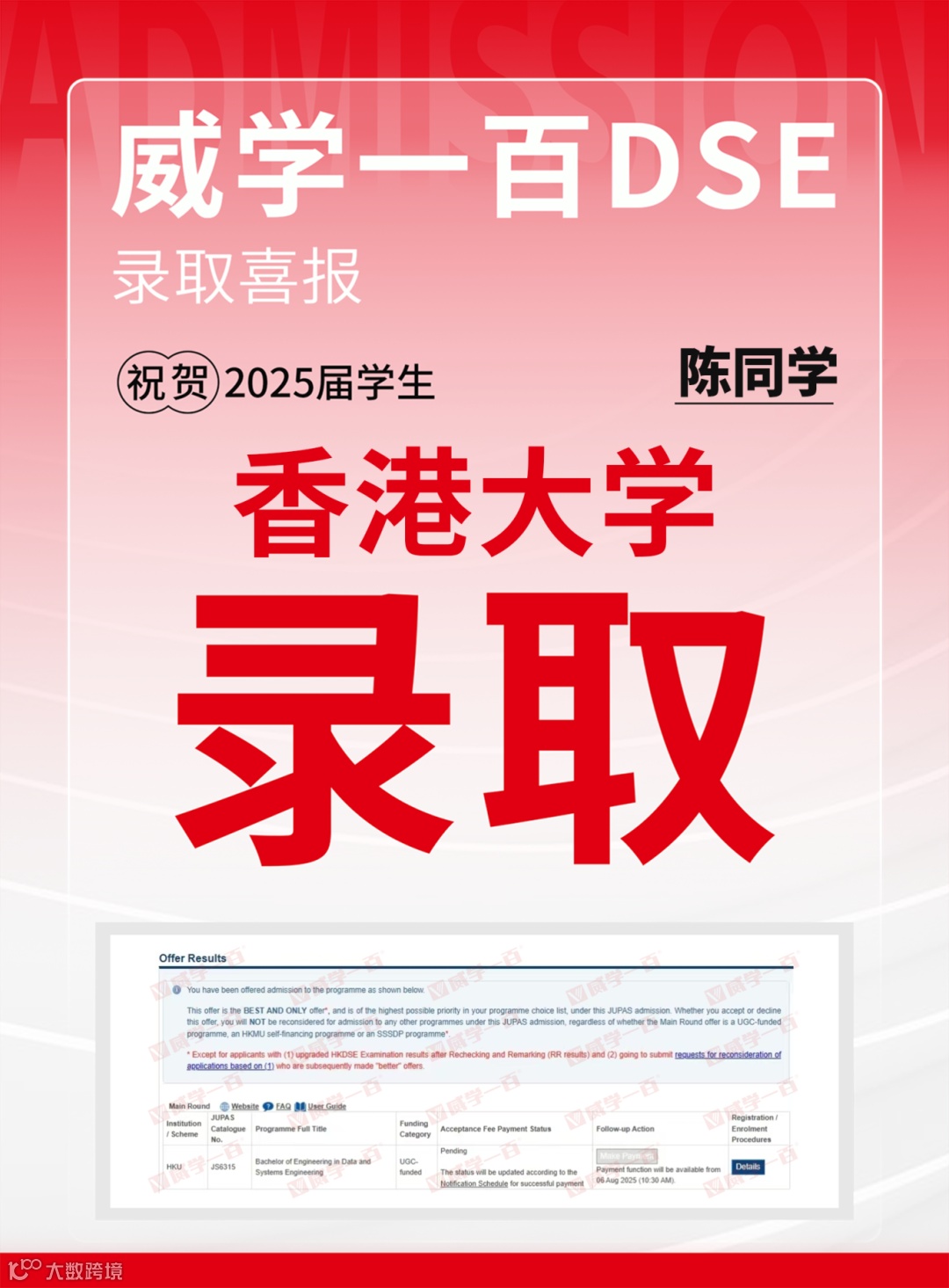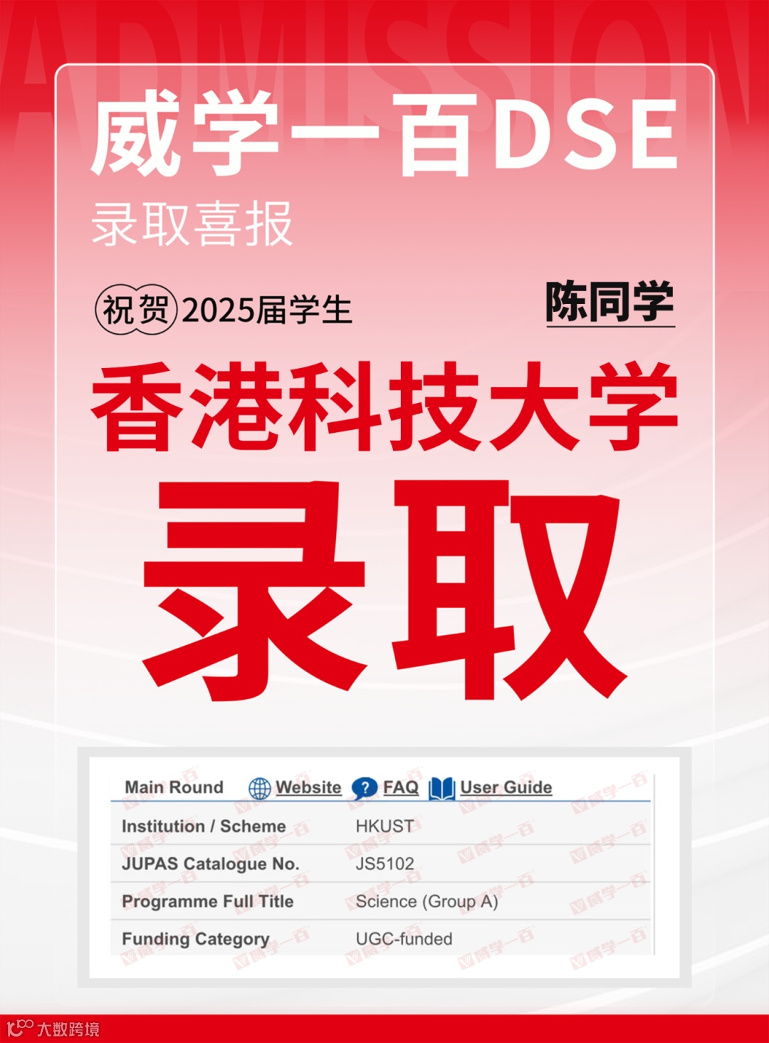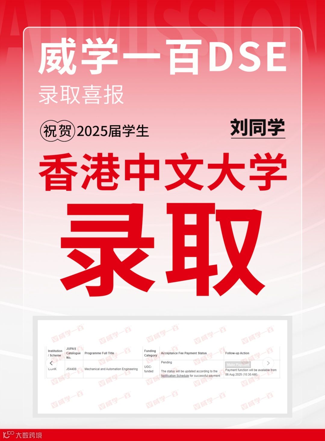 恭喜所有港前五录取学员!愿大家在新的求学旅程中乘风破浪、绽放光彩。未来,威学一百将继续深耕DSE教学,助力更多学子圆梦名校!