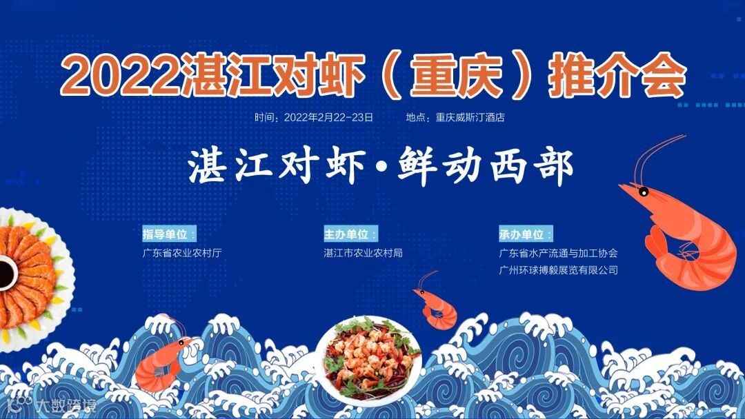 为扩大湾区水产品“产销对接”渠道,做大、做强 “湛江对虾”品牌,吹响粤渝协作共促消费的新号角,推进乡村振兴,开创西部大开发新局面,2022湛江对虾(重庆)推介会将于2022年02月22-23日在重庆威斯汀酒店举行,活动由广东省农业农村厅指导,湛江市农业农村局主办,广东省水产流通与加工协会、广州环球搏毅展览有限公司承办。