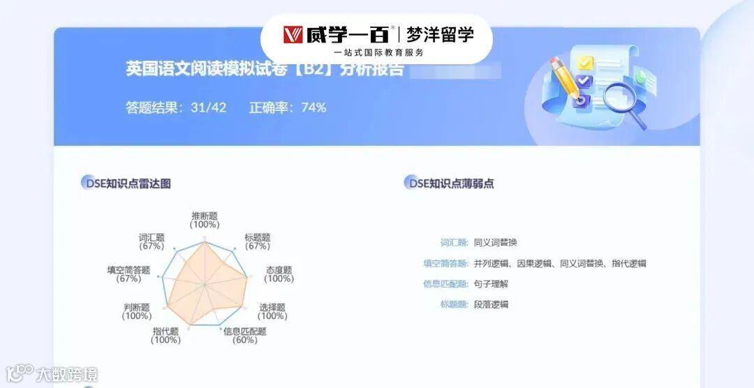 利用AI科技对试卷进行精准分析,定位学员在学习中的薄弱环节。报告提供个性化的学习建议和改进方向,帮助学员有针对性地提升学习效果。