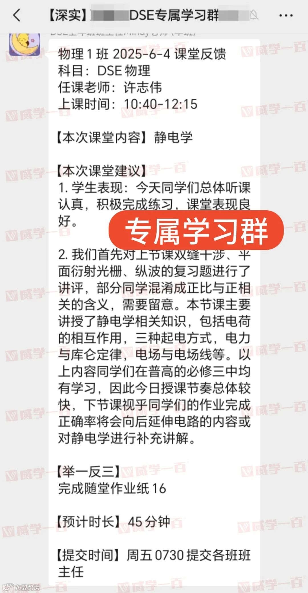 为了让学生们在27年DSE大考前能够充分准备,我们特别安排定期的月测、期中考试、期末考试,以及考前一模/二模/三模/四模。测试内容涵盖所有科目,帮助学员全面巩固所学知识,熟悉考试节奏和流程。此外,我们还为学员安排香港统考,并纳入全港排名体系,让学员清晰了解自己在整体考生中的竞争力水平。(点击回顾:参与全港排名!威学DSE第二次香港统考圆满结束!)针对模考暴露出的问题,老师们会迅速进行反馈,并据此进行教学调整,让学员们能够及时弥补不足,为27年的正式考试做好充分准备。