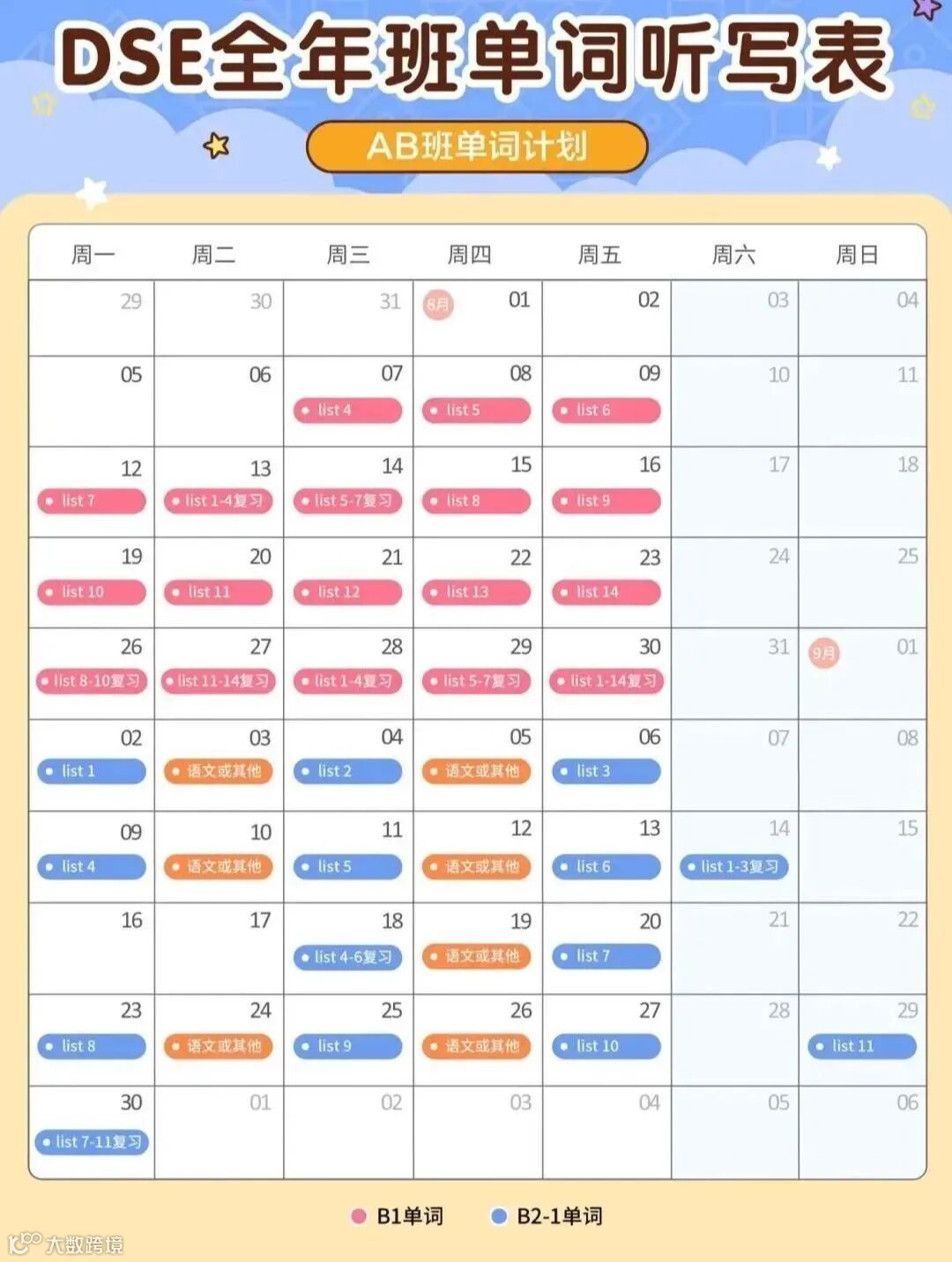 我们深知在DSE学习中,英语科是所有学科中难度系度最高的,而学好DSE英语第一步是词汇量过关。因此,全年班对词汇学习给予了极高的重视。我们为DSE全年班的同学们精心设计并制作了一份详尽的月度词汇测试任务进度表,并进行定期测试以巩固记忆成果。这种阶段性的测试有助于学员更好地掌握自己的词汇学习进度与效果,提升词汇应用能力。