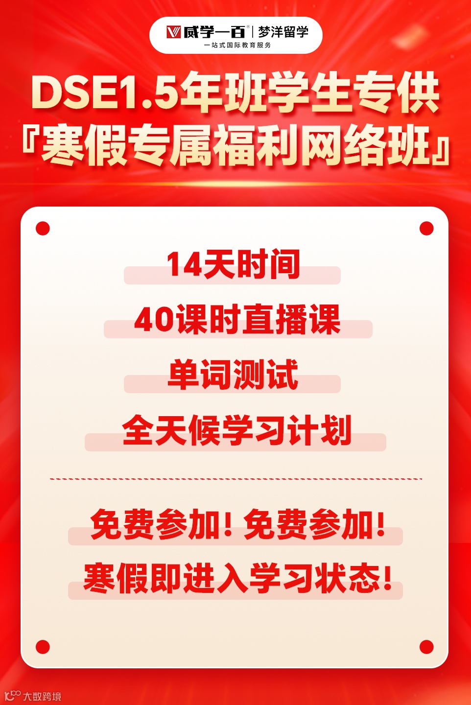 对于已经报名了威学DSE1.5年班的同学来说,提前做好学习铺垫至关重要。即将到来的寒假正是抢占先机的黄金时期,合理利用这段时间熟悉备考方向、培养良好学习习惯,能为3月正式开课打下坚实基础!