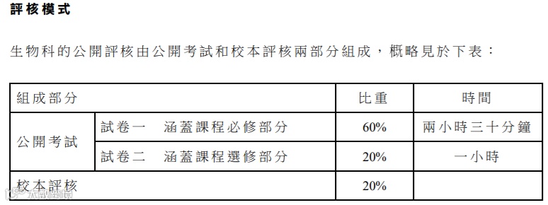 DSE生物最终成绩由“笔试(80%)+校本评估(20%)”构成。
