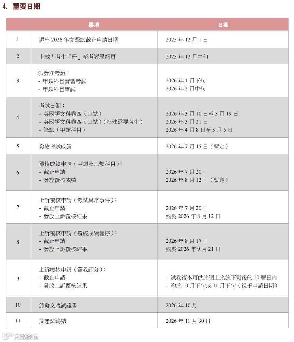 小编为大家汇总了本次《考生手册》重点资讯和重要时间表,参加26年DSE大考的考生可收藏起来!