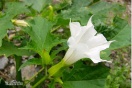 曼陀罗:别名大喇叭花,植株较高,约0.5-1.5米,全株均有毒,种子毒性最大。毒性物质为莨菪碱、东莨菪碱和阿托品等。食用和外敷曼陀罗叶均能引起全身性中毒,一般在食用30分钟后出现症状,多为急性突然发病。