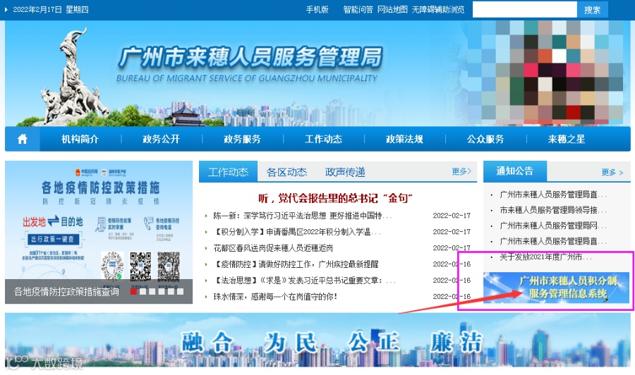 根据《广州市来穗人员积分制服务管理规定》及实施细则,我局对广州市来穗人员积分制服务管理信息系统进行了升级改造,将于2022年2月21日上线试运行。现将有关事项通知如下: