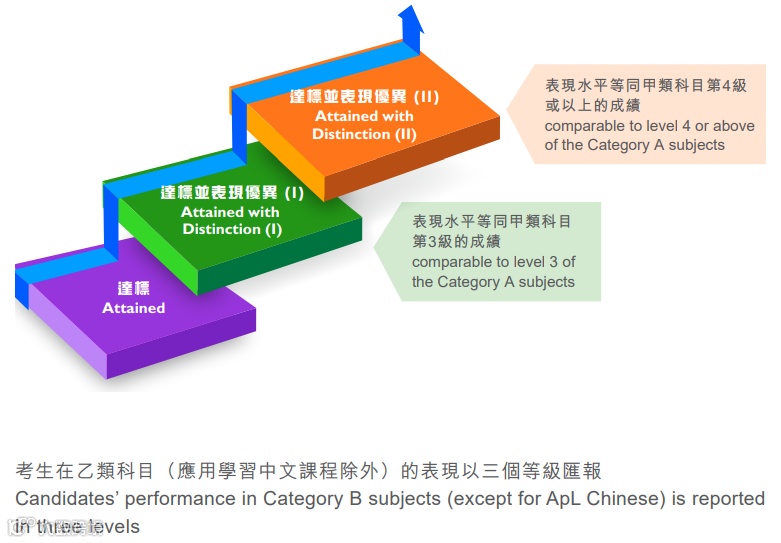甲类科目是DSE的核心,采用水平参照成绩汇报制度。简单说就是只看你自己是否达到固定标准,和其他考生考得好不好、有多少人考都没关系。