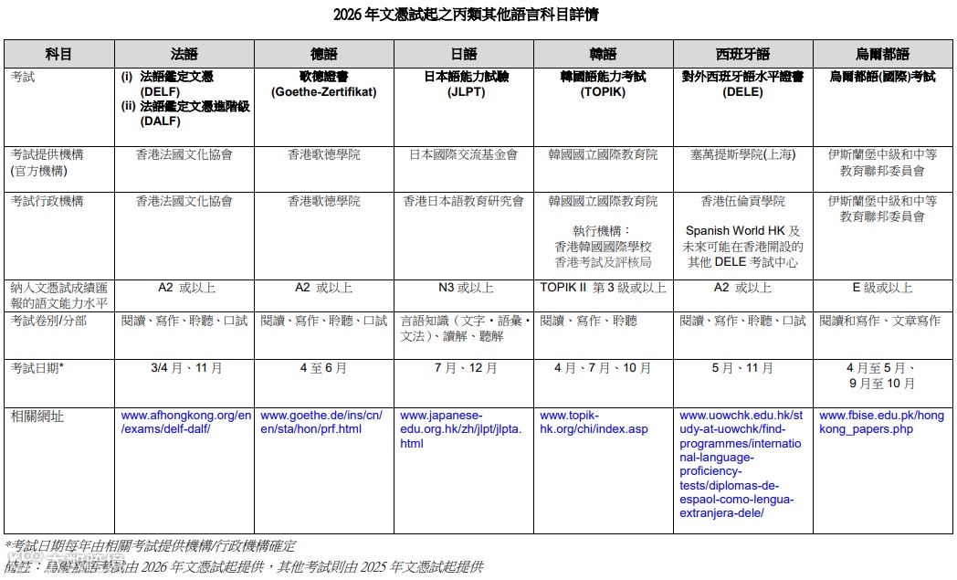 - 不同语言考试有专属评分标准,只要达到指定水平,就能把成绩列入DSE证书;