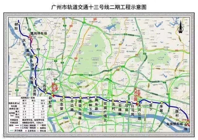广州十三号线二期项目从西到东经过白云、荔湾、越秀、天河和黄埔5个区,沿途设23个站点,既能解决广州中心组团与西部片区和东部片区之间的交通需求,同时缓解了中心城区东风路、黄埔大道、中山大道等交通拥堵明显的路段。