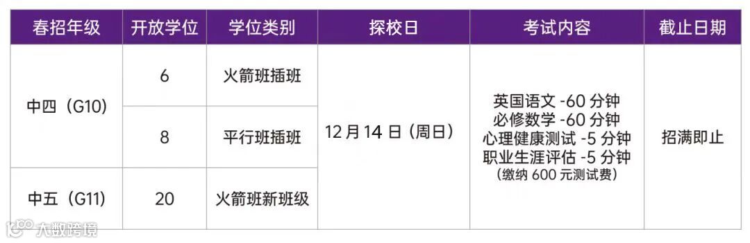 富源英美DSE学部春季招生面向G10-G11年级学生,目前尚有少量优质学位开放申请,申请的学生需统一进行入学测试(英语、数学笔试),通过后将发放录取通知。每个学生每年有2次报考机会,择优录取!