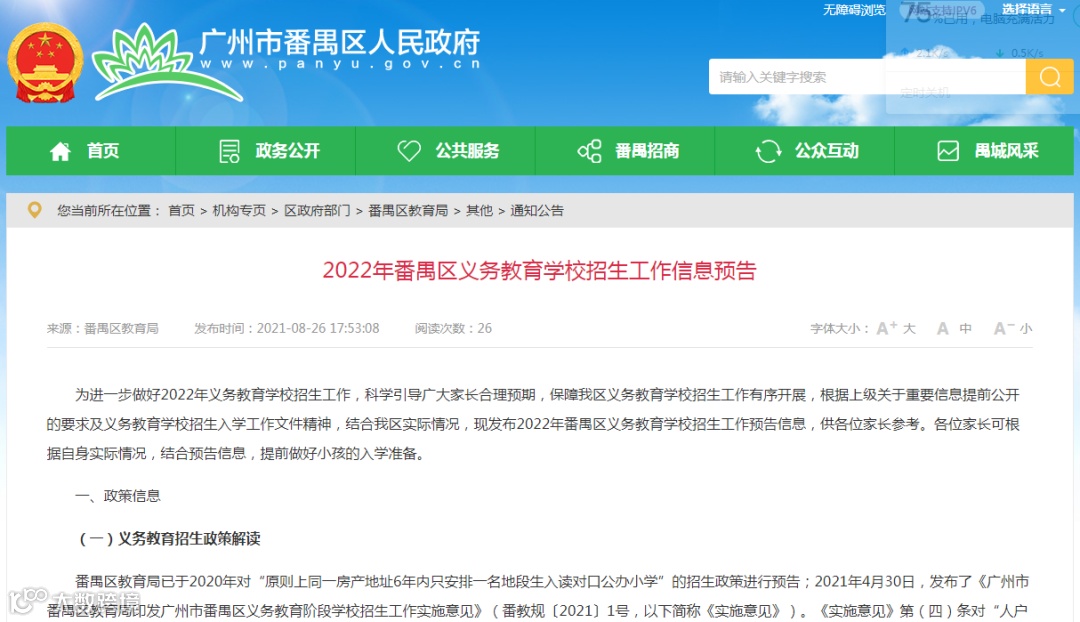 近日,番禺区人民政府和黄埔区人民政府分别发布的《2022年番禺区义务教育学校招生工作信息预告》(下简称:《招生预告》)和《广州市黄埔区2021年义务教育阶段学校招生工作实施细则》(下简称:《招生细则》)将于本月正式实行。