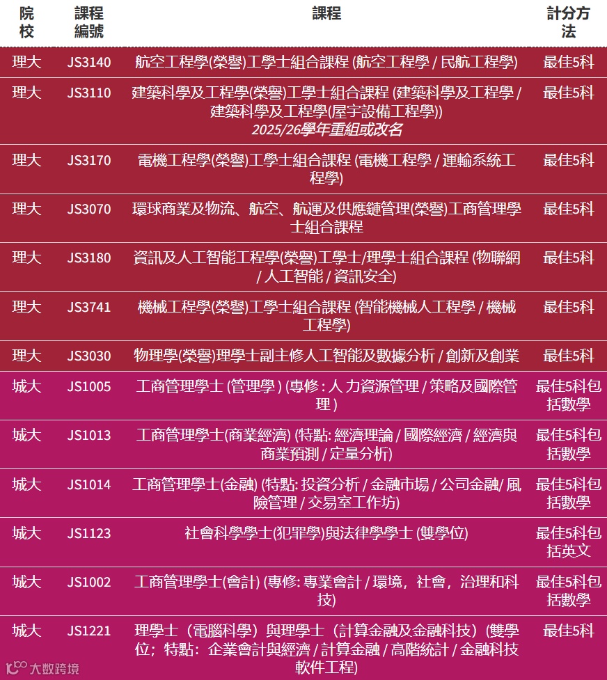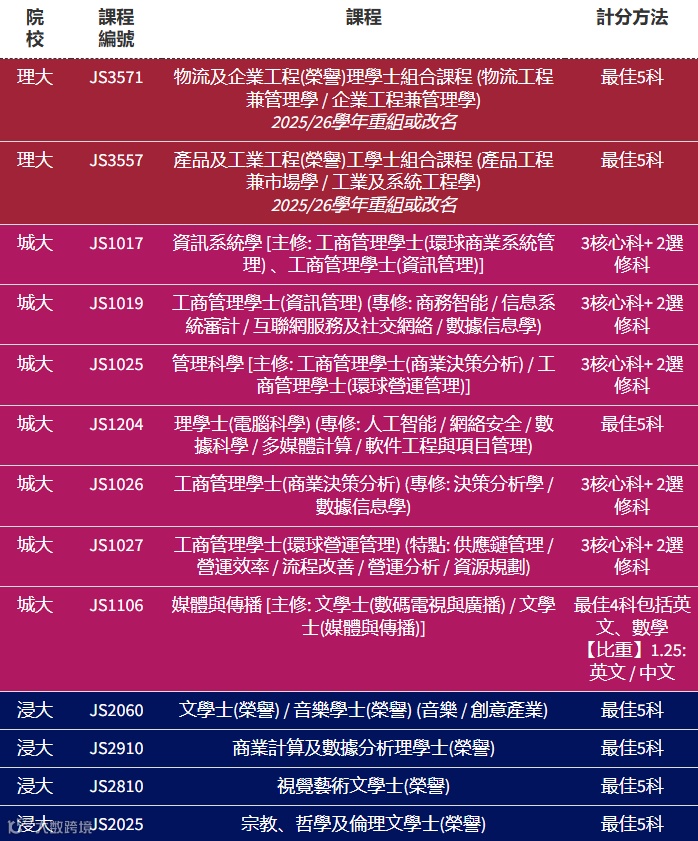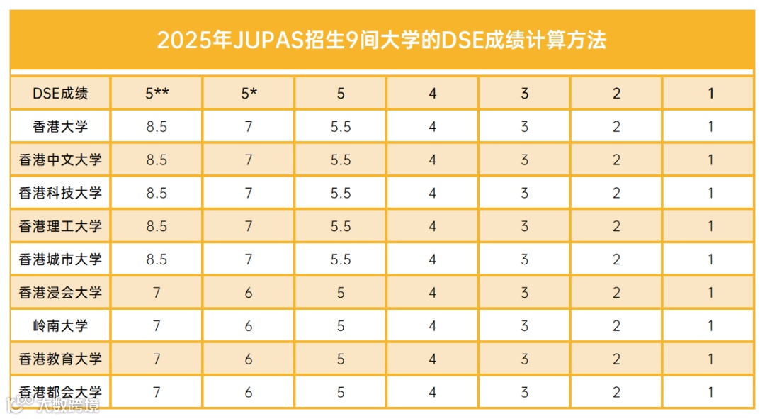 不过经大学联招(JUPAS)收生时,各大学的计分方法均有差异,例如港大、港中文、港科技、港理工、港城大会按照「5**」=8.5分的换算方法,而浸大、教大等则按照「5**」= 7分。不同的计分方法,可能是决定考生能否被录取的关键因素。
