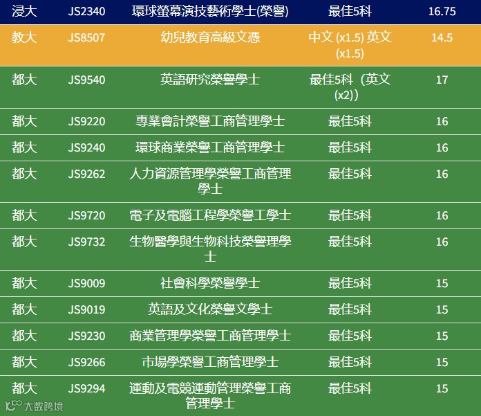 目前,2025年DSE考试正如火如荼进行中,不少家长、同学来咨询,DSE考20分可以选择哪些院校?20分以下又有哪些选择?今天,港校小助手整理了2024年联招收生分数20分及以下的专业,家长同学们可以参考一下。