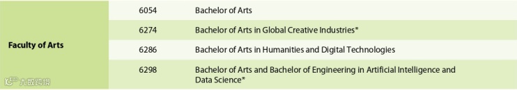 从原有的2个专业增加至4个,新设专业:全球创意产业(课程编号:6274)和文理学士(人工智能与信息科学)(课程编号:6298)。