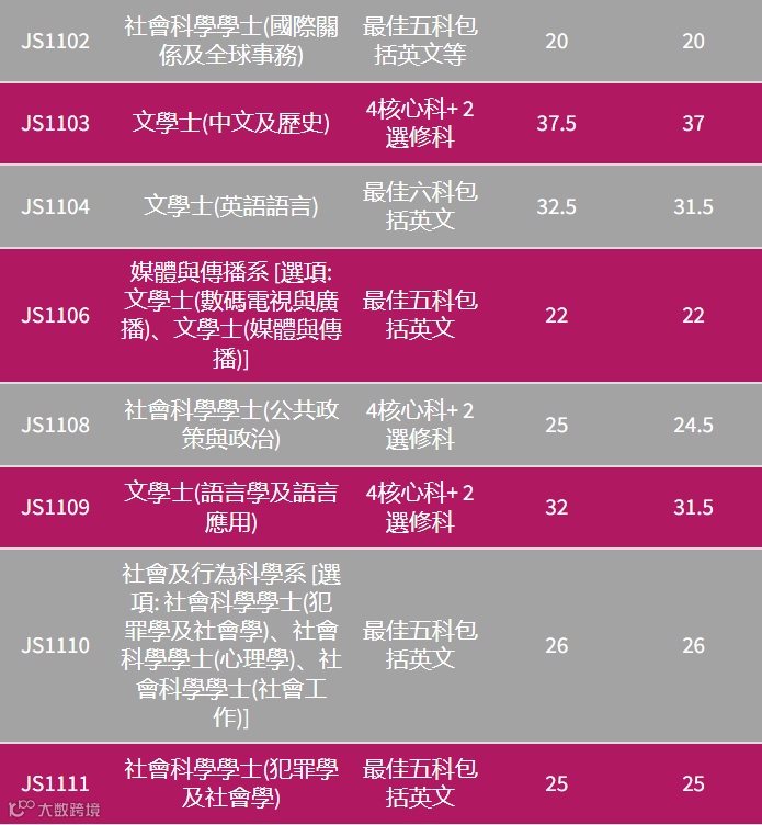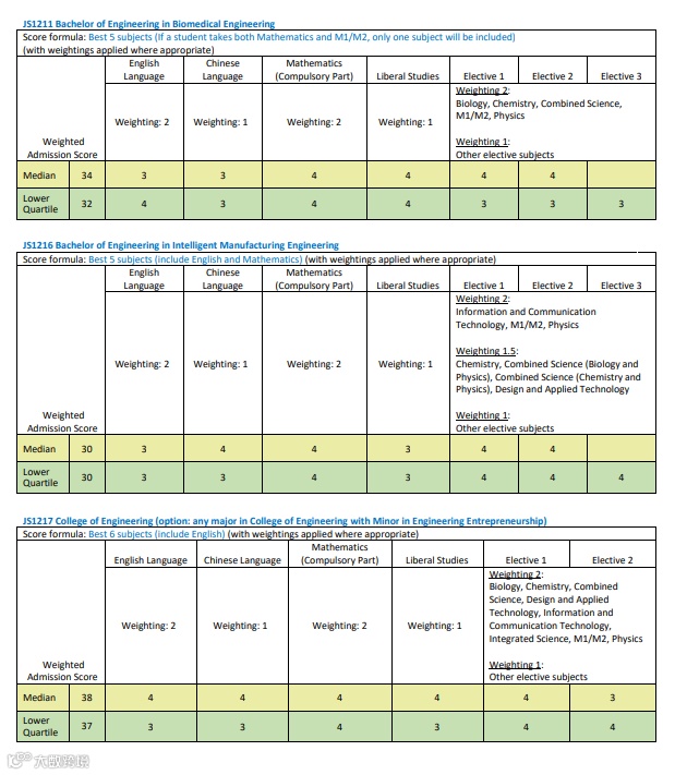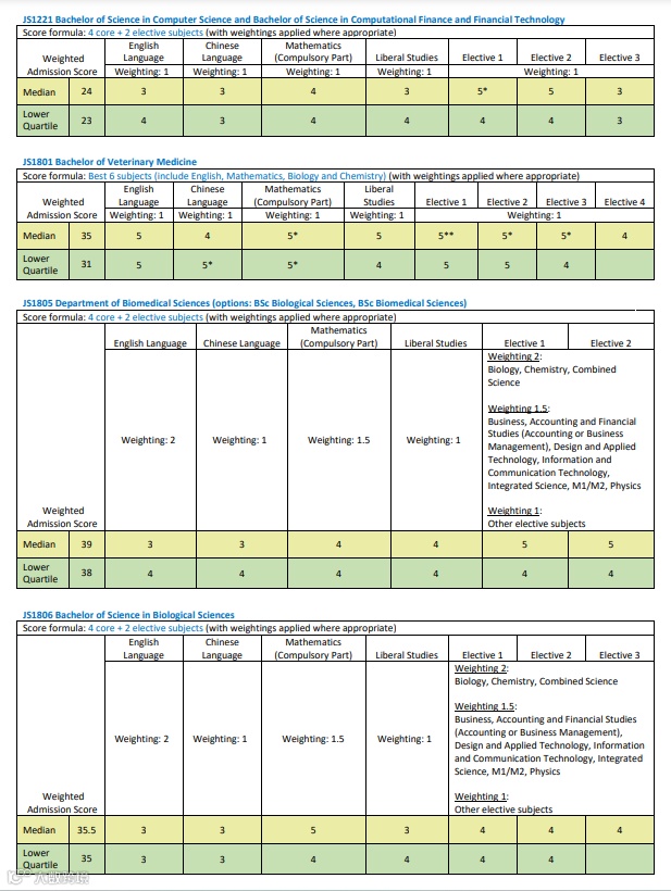 图:香港城市大学各科入学要求