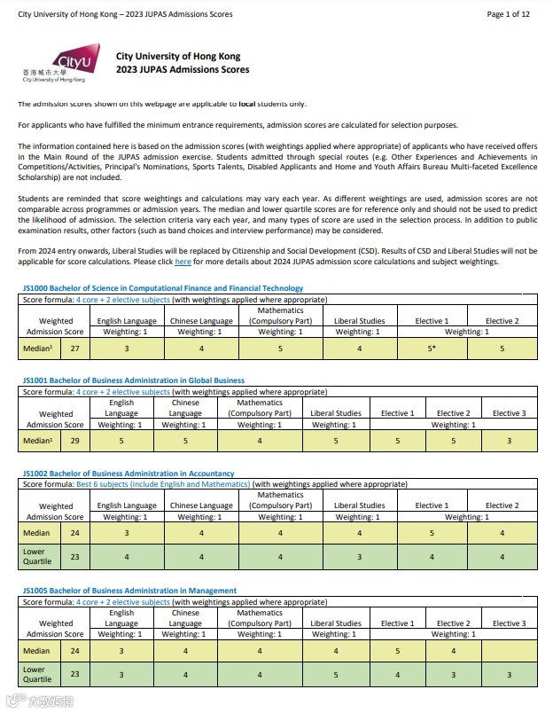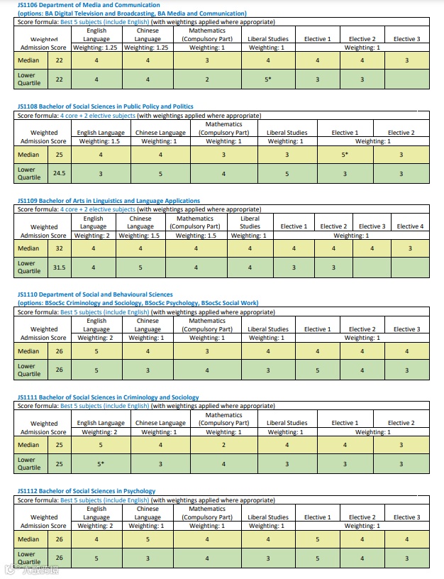 从2024年起,通过JUPAS报读城大的学生需达到最低要求“332A33”。但个别学科在特定科目上会有更高的要求。