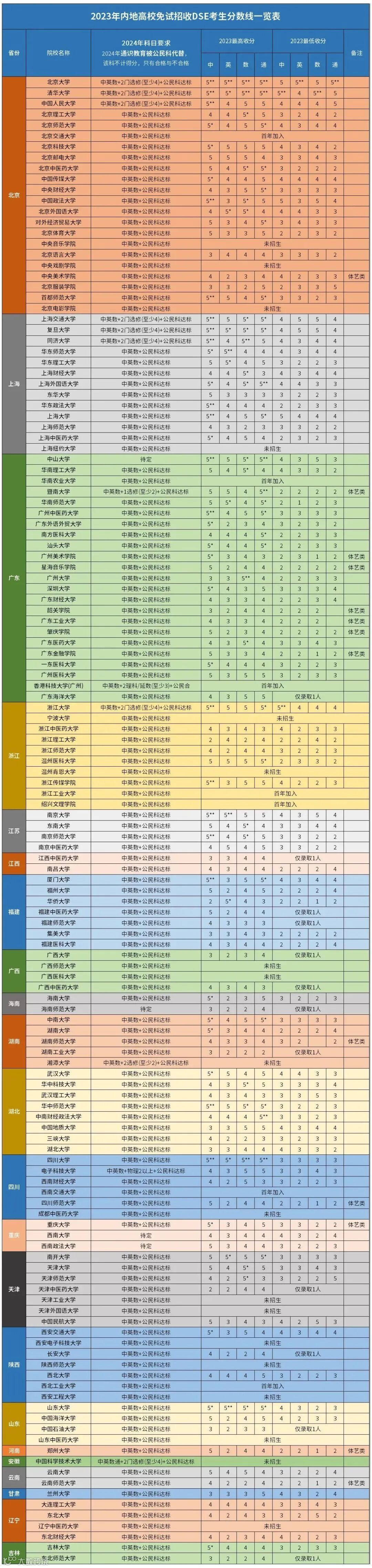 内地算法没有比重,也没有额外加分,一般看裸分。下图是2023年内地高校的DSE入学要求,以及各院校最高和最低的的收生分数,有需要的记得收藏!