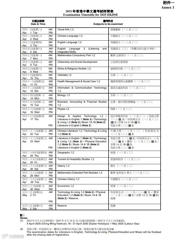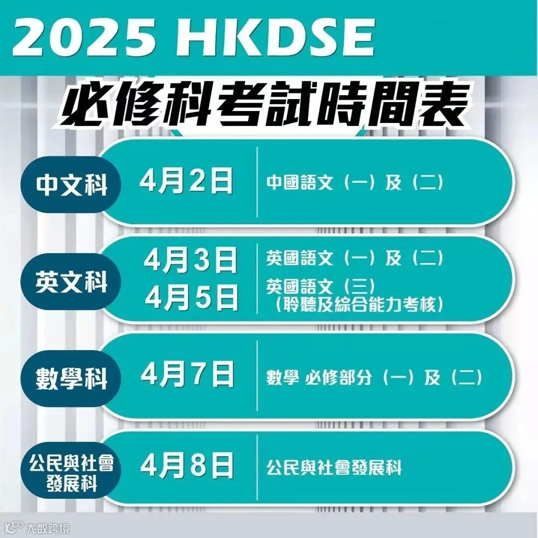 香港考评局于近日公布2025年DSE考试时间表,明年准备参加DSE考试的考生们可要密切关注哦,以便同学们尽早安排新一轮复习计划哦!
