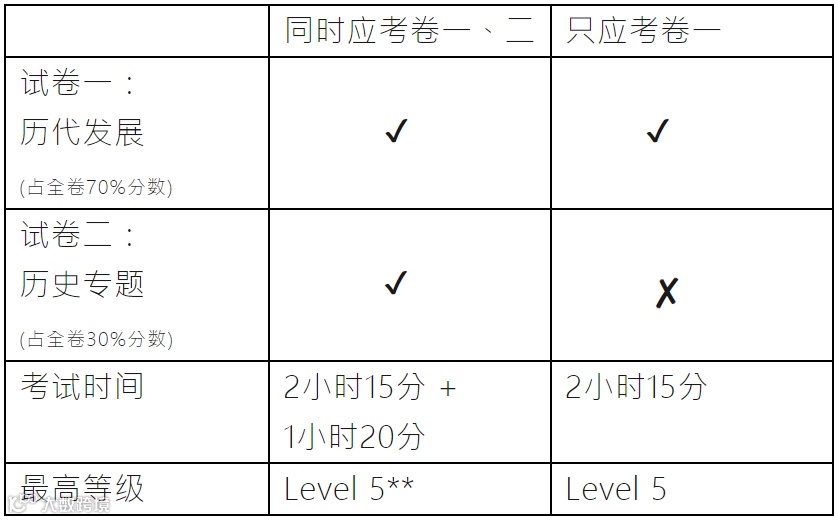 中国历史科改革的情况就像英文科的B1、B2分卷一样,例如英文阅读听力的B1卷较浅,选这份卷最高只有Level 4的成绩;而B2卷较难,能取5**的成绩。