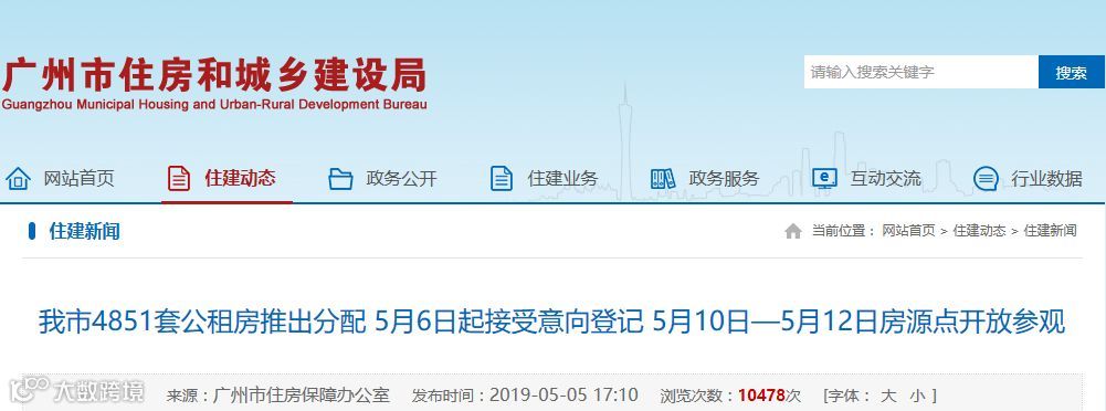 广州市住房和城乡建设局发布原文中表述道:5月6日起接受复核申请公租房条件的家庭意向登记,于6月28日公开进行摇号预分配。