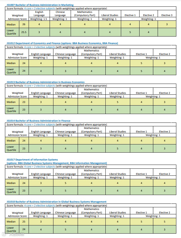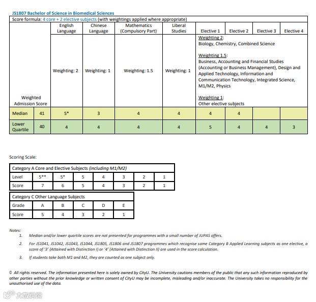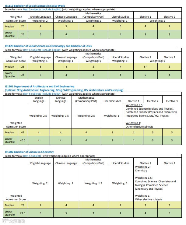今年香港城市大学最高分依旧是医学类专业,其中兽医专业JS1801需要平均每科5.8分(7分满分)。