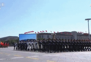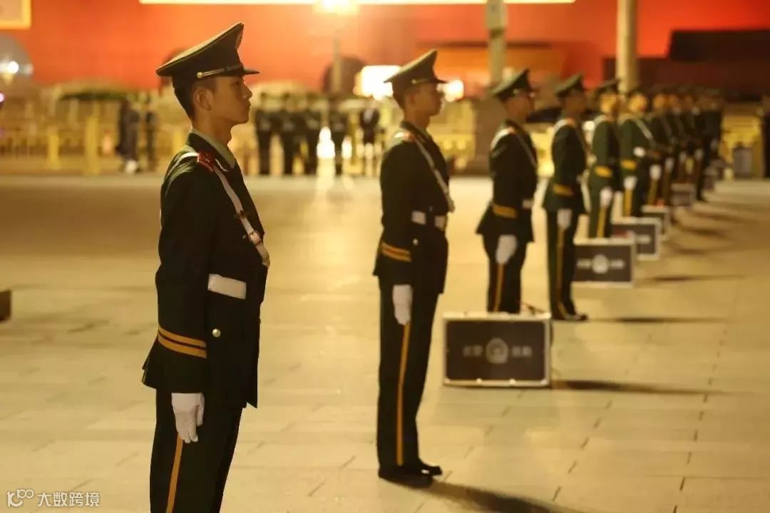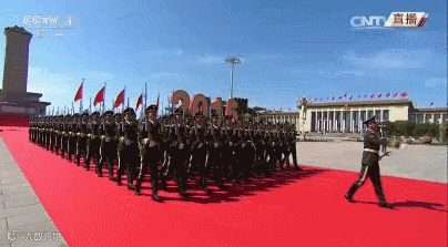 2018年国庆假期,在天安门广场上,武警北京总队执勤第一支队官兵整齐列队,维护现场秩序。