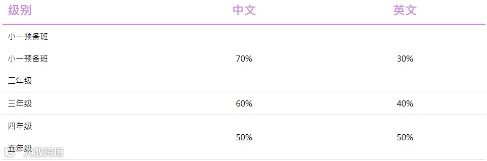 在初小阶段,中文(普通话)教学的时间较多,到了高小阶段,待学生奠定中文的基础后,英语教学的时间将会递增至与普通话教学的时间一样。