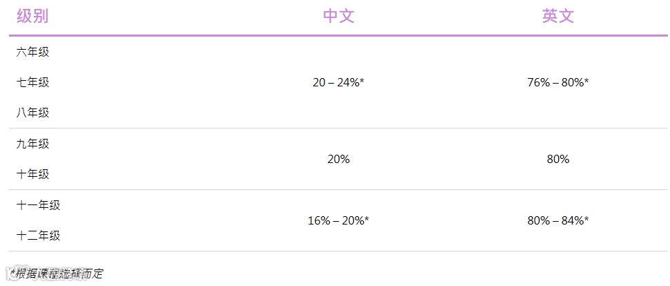 在中学阶段,英语教学的时间会大幅度增加以补充学生在小学时奠定的中文(普通话)所占用的时间。