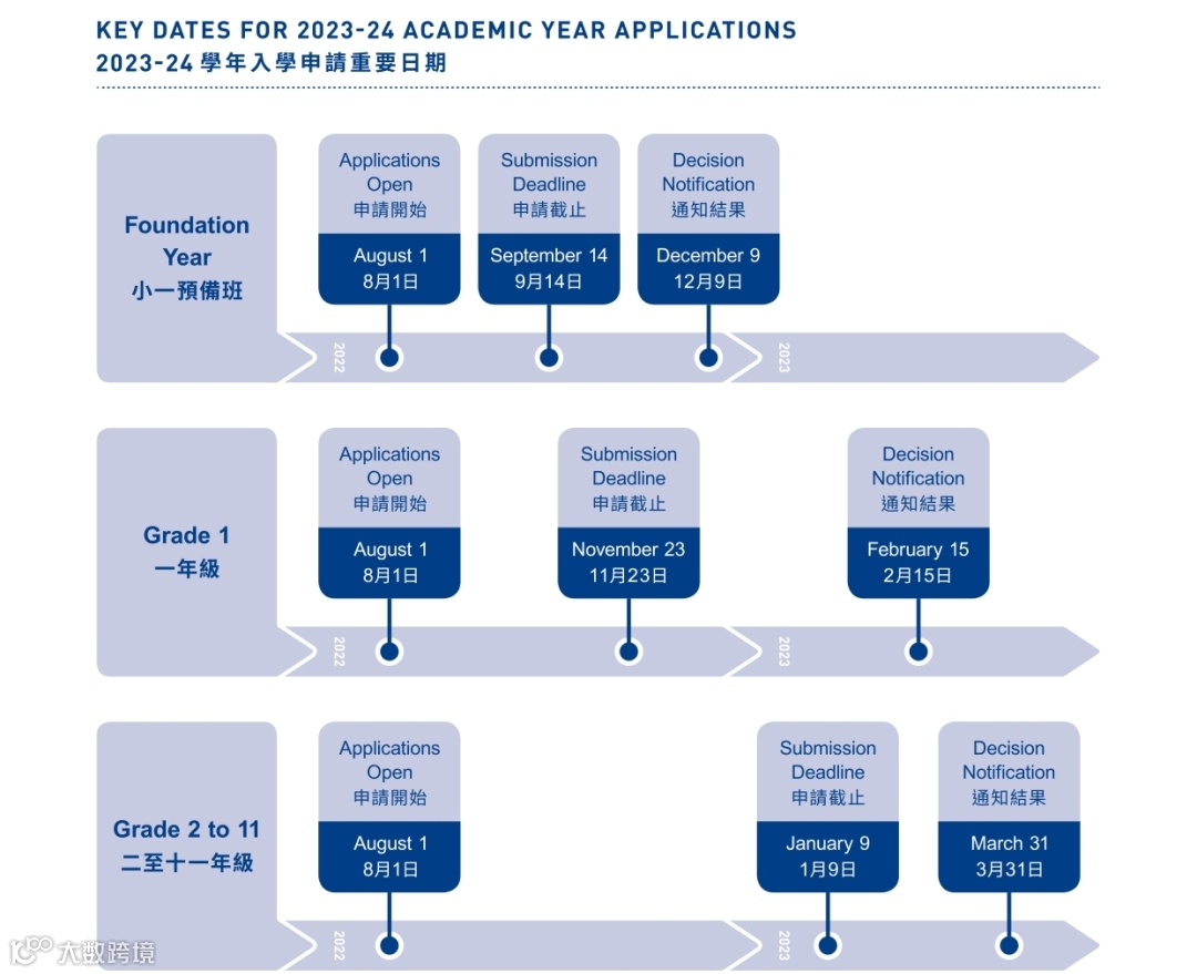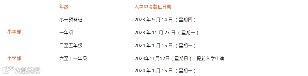 2024-25学年所有年级的入学申请于2023年8月1日开始。下表列出各年级的入学申请截止日期。