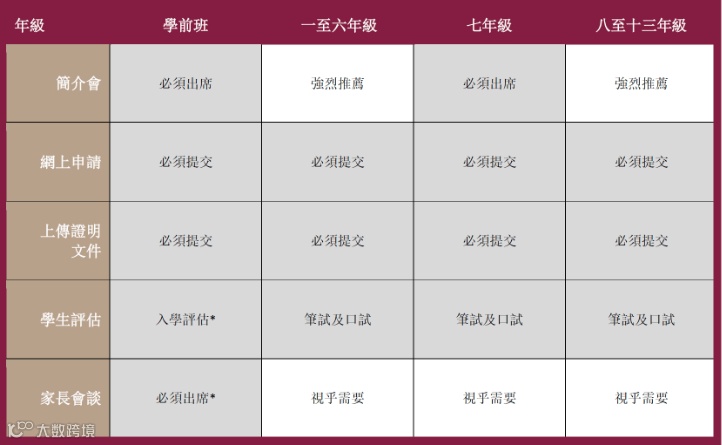 学前班申请者最早可于入学前2年提出申请,学校不接受早于两年的申请。申请从入学前两年的9月1日起至入学前一年的10月1日截止。