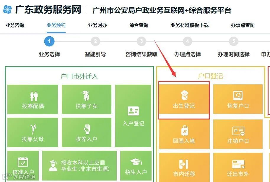 1、PC端预约:申办人登录广州金盾网,点击“出生登记”,按照智能引导进行预约。并按照预约时间携带相关材料到预约的入户地公安机关进行办理;