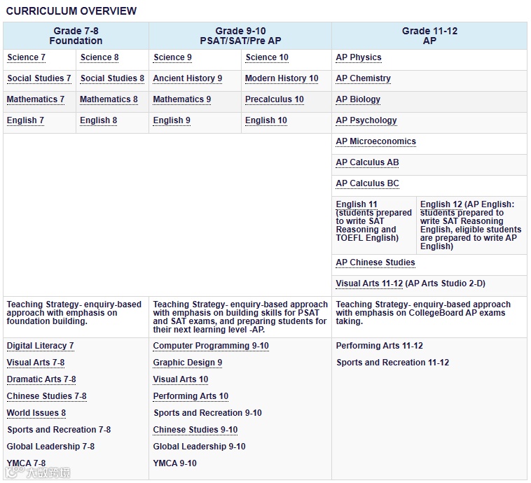 所有学生都学习全球认可的PSAT、SAT、AP以及托福,学校课程遵循北美课程的最高标准,高中课程的基础是基于美国大学委员会的SAT和AP课程规范。协同的高中生每年都会进行各个课程的考试,考试中表现出色的学生通常被世界各地的大学优先录取。