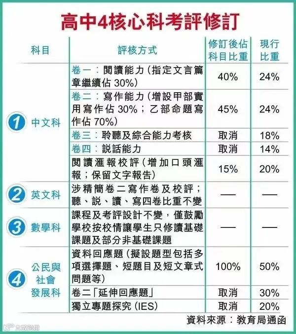 事实上,旧制中文科的考核,重点放在背诵、古文文字的钻研、以及答题技巧等能力;而新制的中文科考试则是重视逻辑思维、跨文化意识、表达及沟通能力等实用能力。
