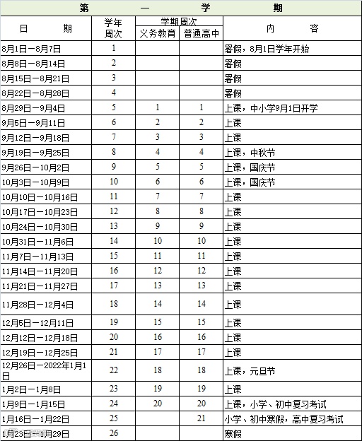 全市普通中小学校统一于2021年9月1日开学,高三年级考虑到高考时间安排,于8月2日开学。