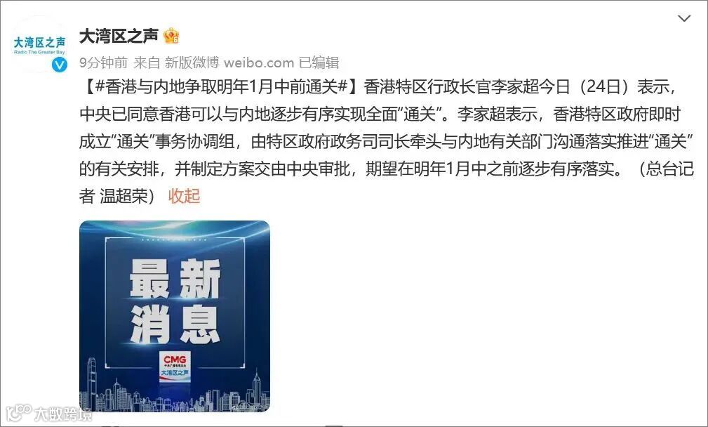 香港与澳门已率先通关!