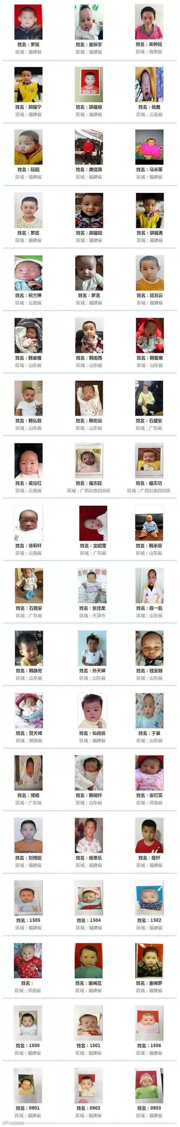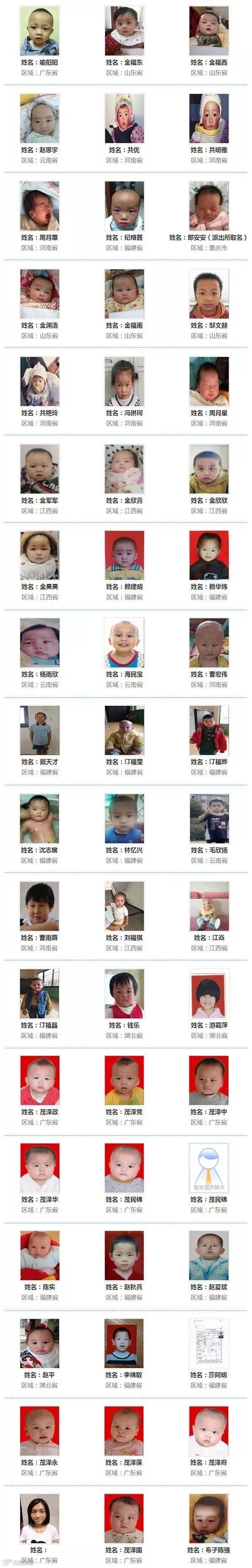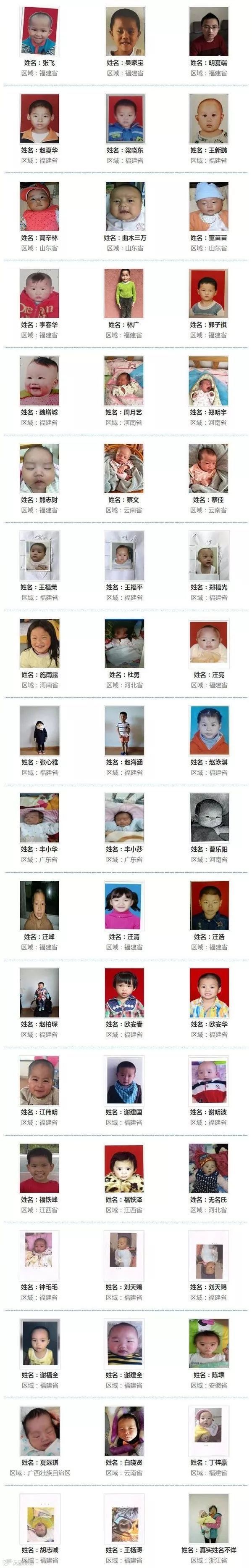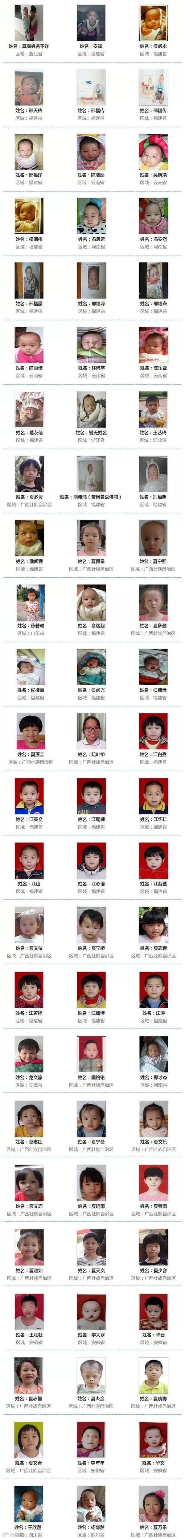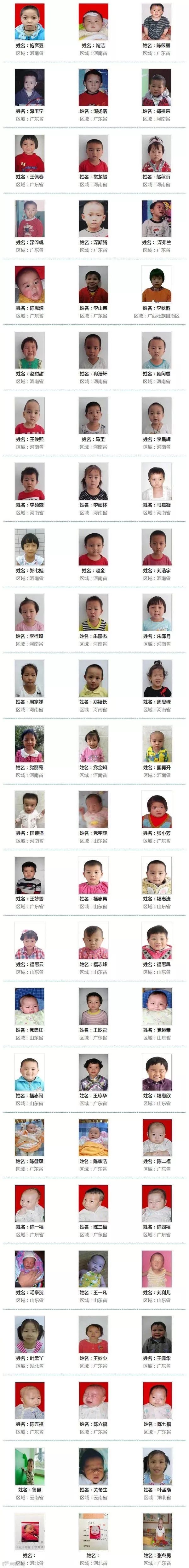 ◆ 近日,数百名被警方解救的被拐儿童的名单和照片公布,他们至今仍未找到亲人。他们被拐卖时,有的刚出生几天,可能从未在父母怀中撒过娇,至今不曾感受过爸爸妈妈的爱, 请一起帮助这些宝贝回家!
