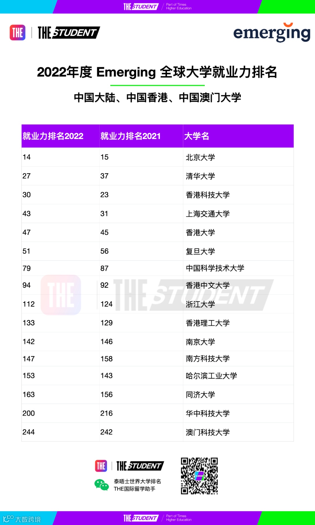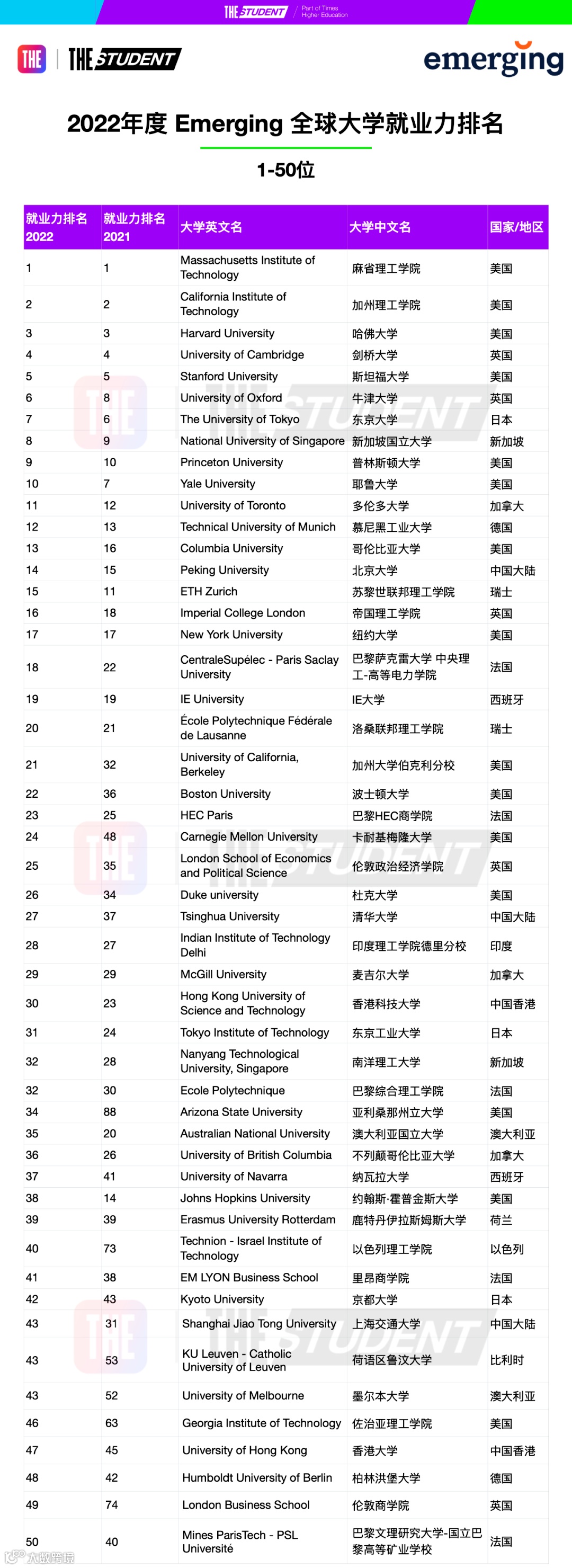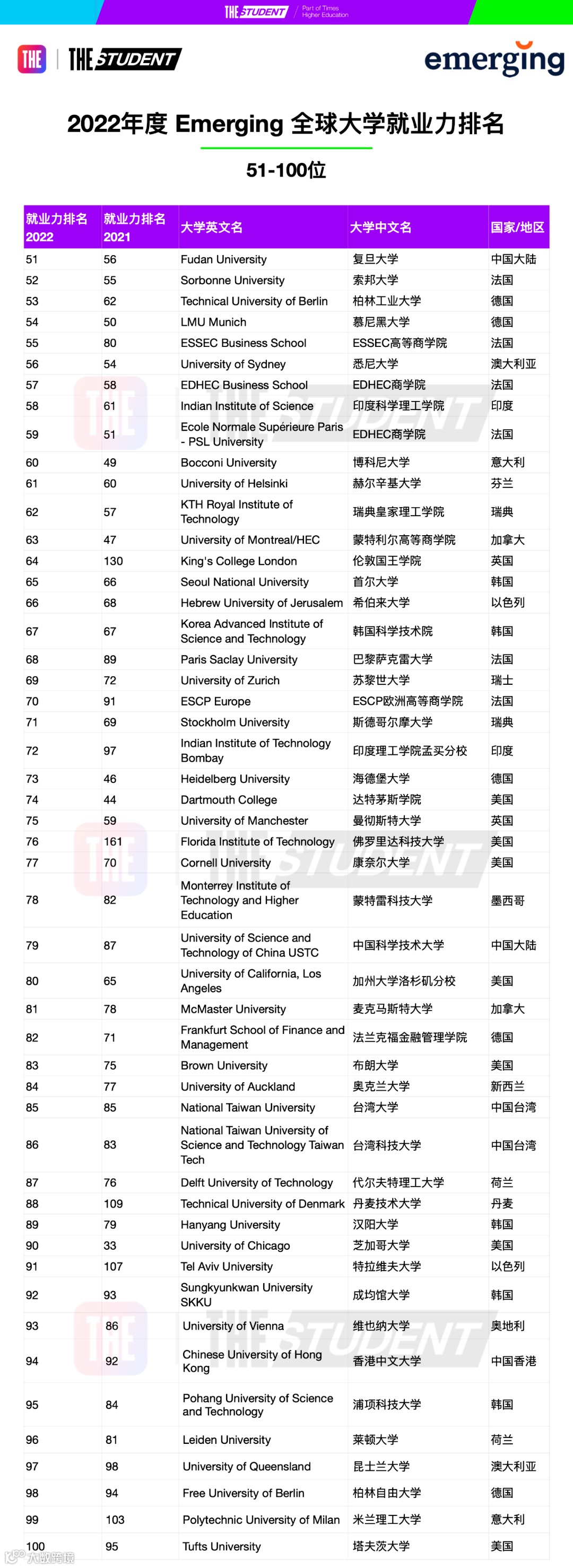 2022年度全球大学就业力排名由来自24个国家和地区的超过10,000名管理者参与投票,他们每年在全世界内招聘超过80万个面向应届生的全职和大学实习职位。