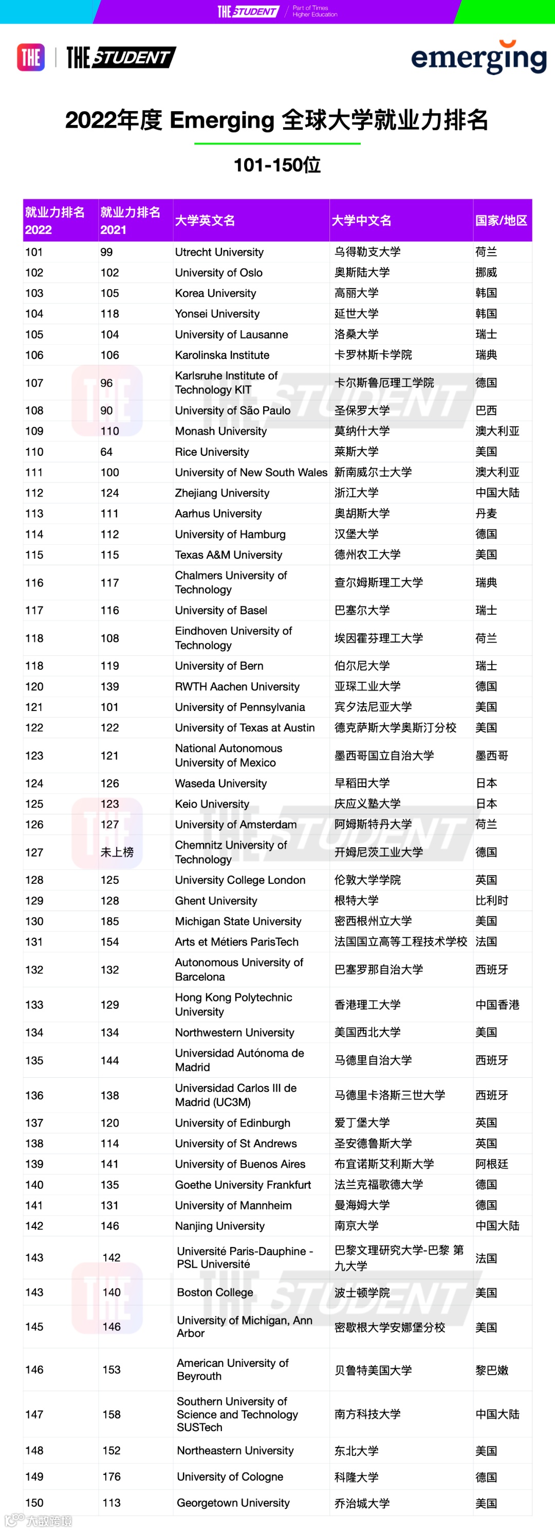 昨天(11月23日),泰晤士高等教育发布了2022年度的全球大学就业力排名。这也为大家进行留学选校也提供了一个重要的参考维度。