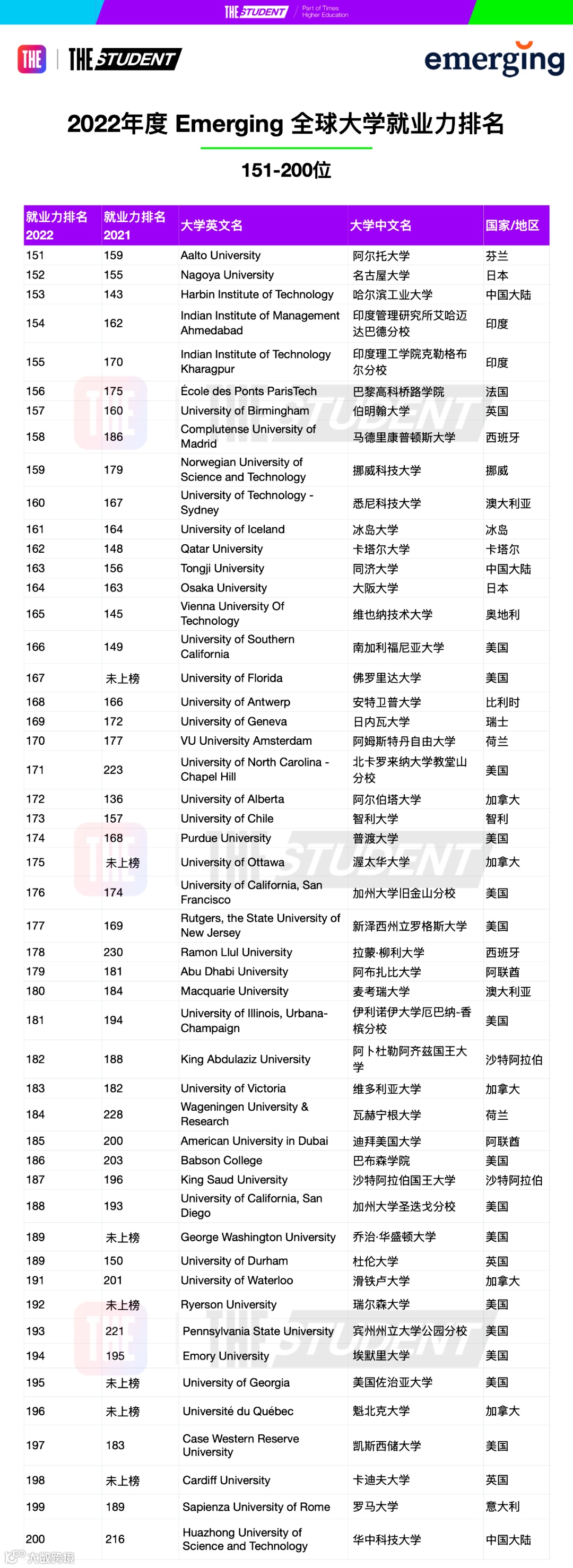 这个排名展示了在顶级公司的招聘人员眼中,哪些大学在提升学生就业力和对于工作场合的准备程度上具有最佳的表现。也就是哪些学校的毕业生更容易受到来自顶级雇主的青睐。