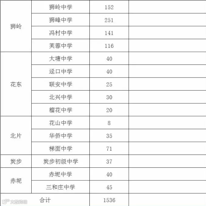 2019年度白云区提供初一积分入学学位数量总共355个,其中石井、新市、永平三个片区最多,人和片区数量最少,仅仅有6个学位。