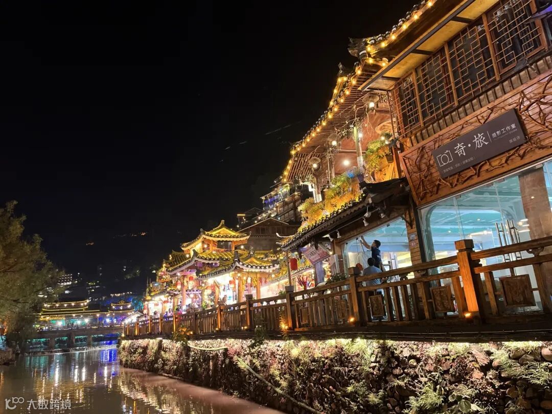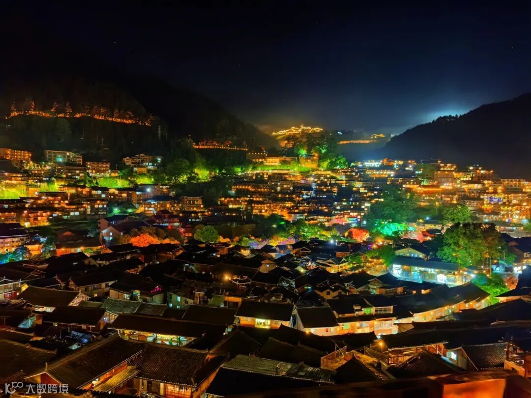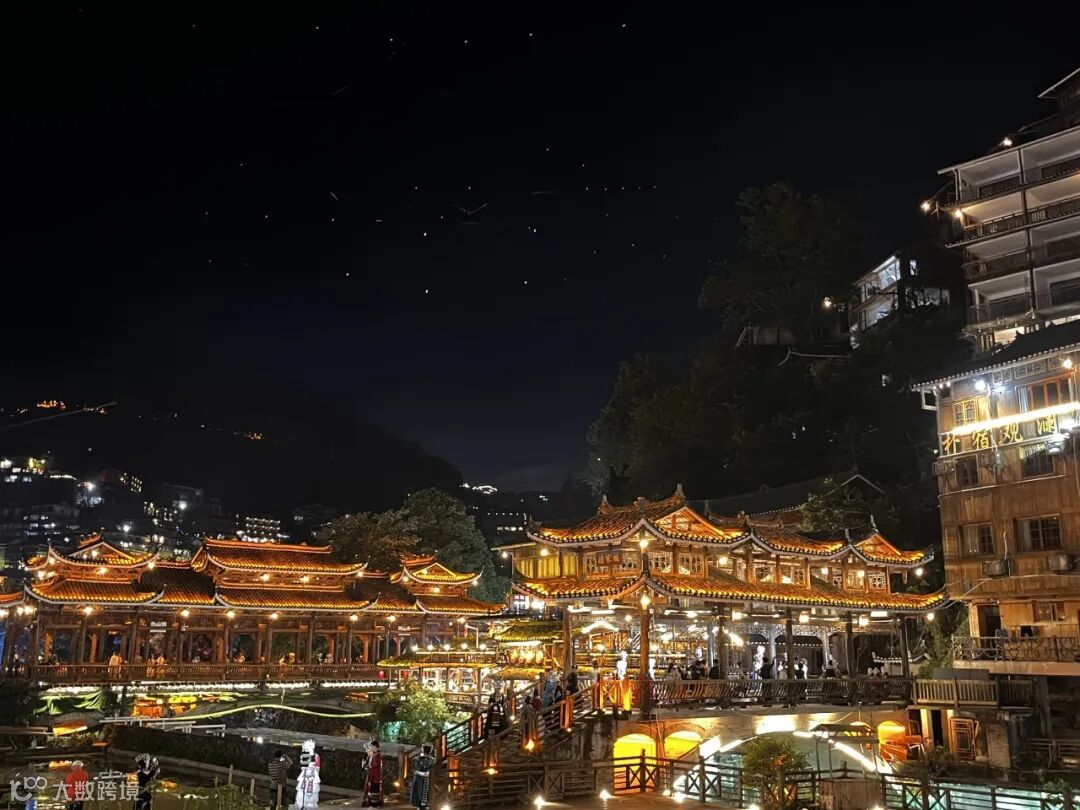 层层叠叠的吊脚楼灯火璀璨,美不胜收