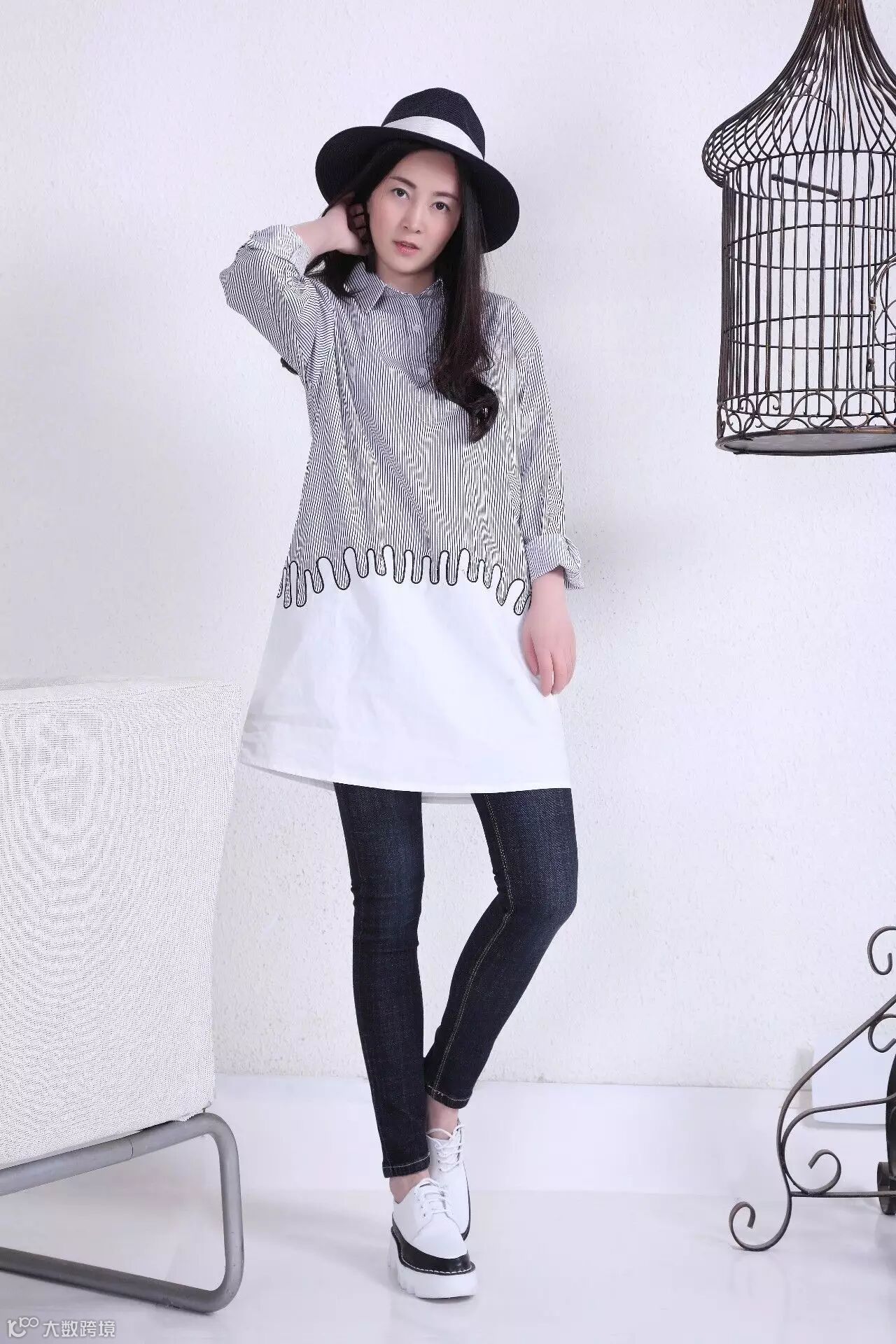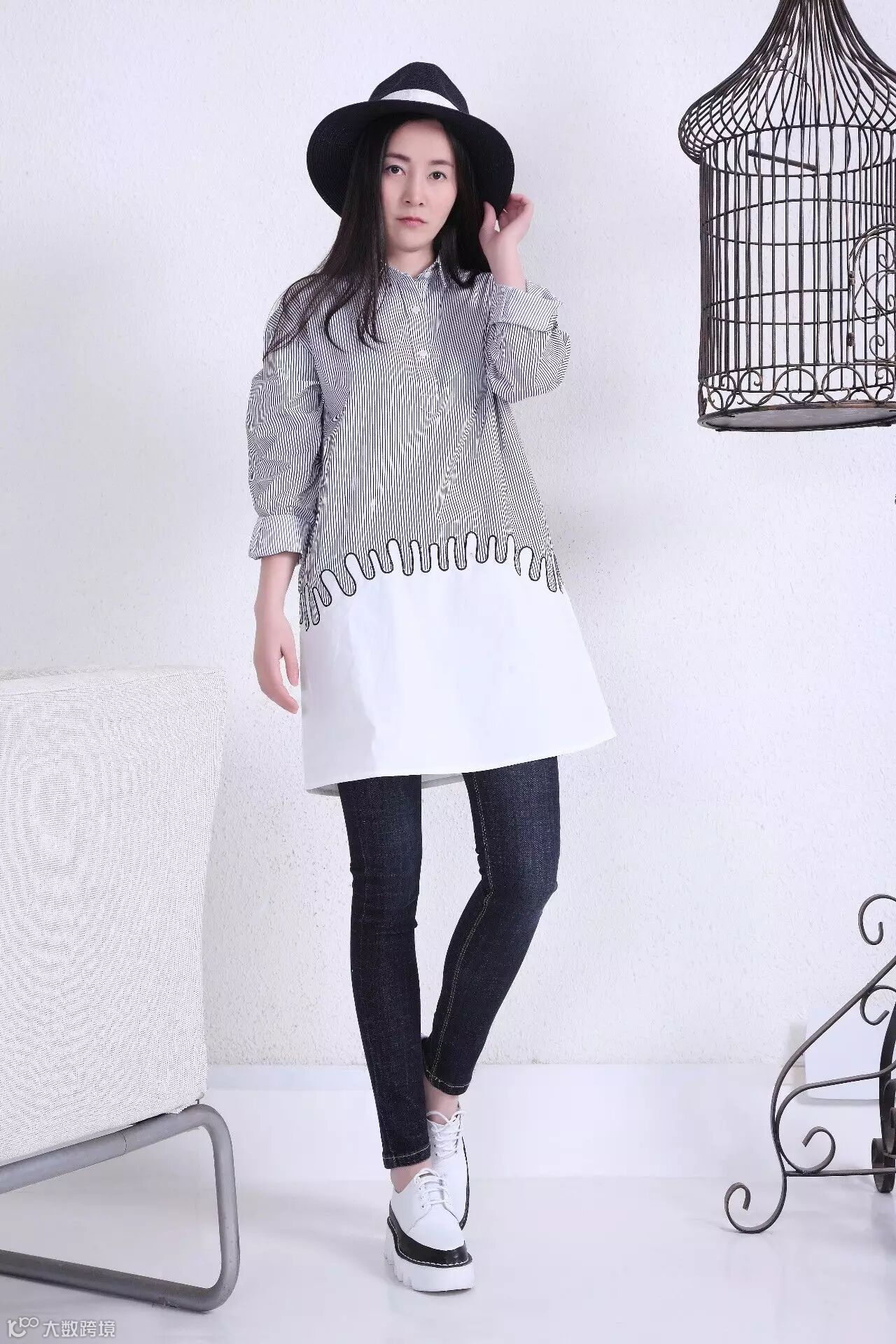 宽松的长T+铅笔牛仔裤
