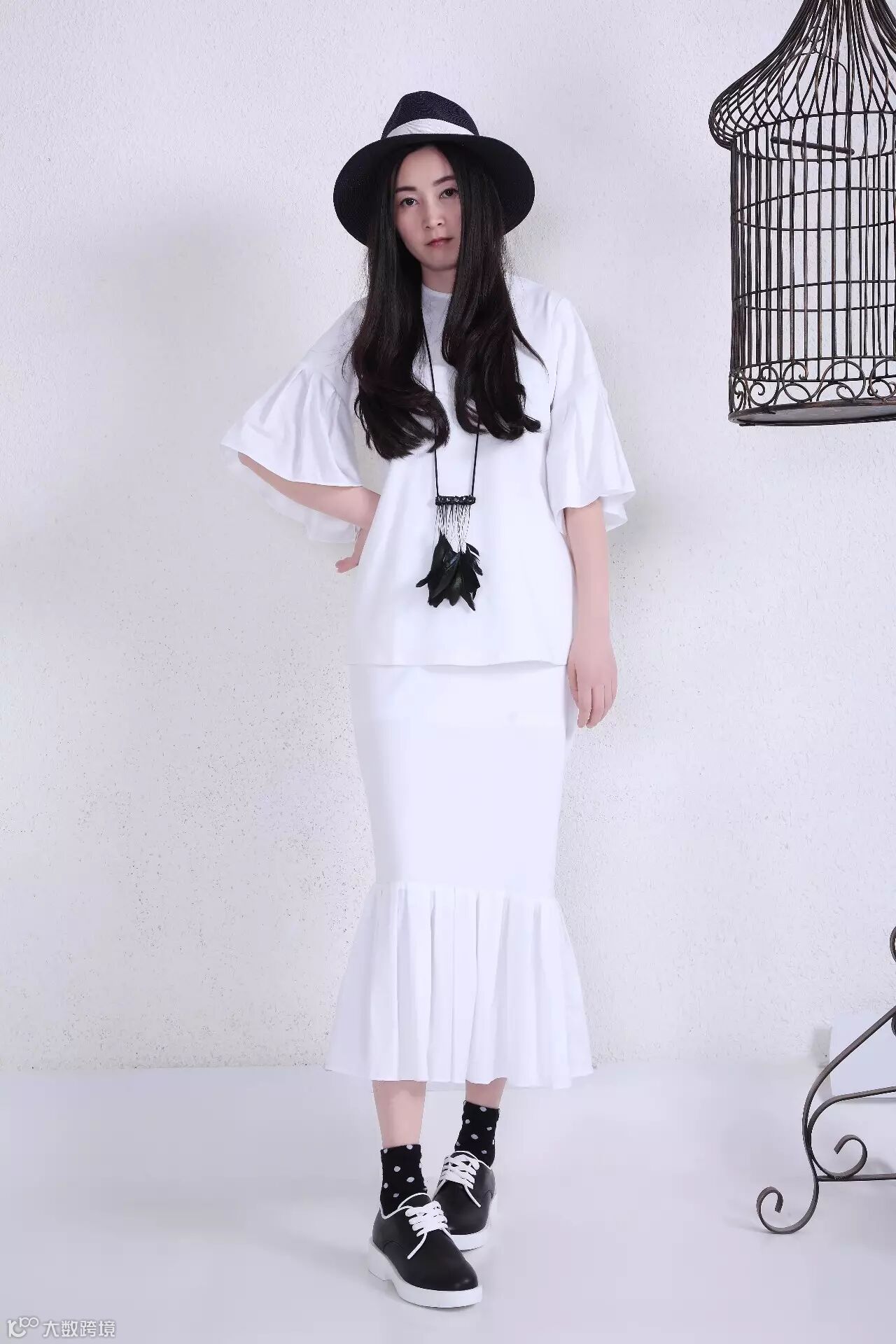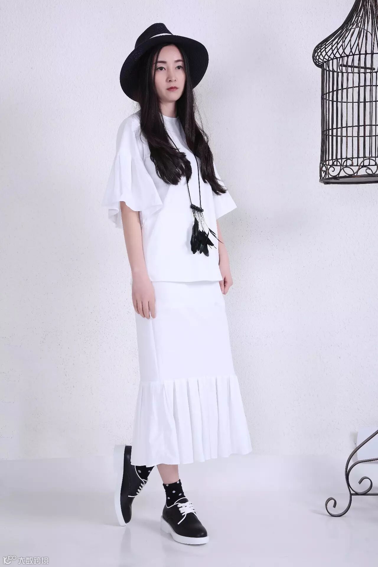 袖口裙摆的荷叶边