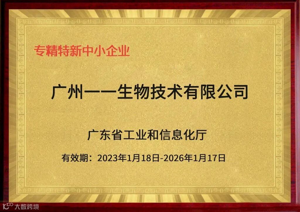 近日,经过企业申请、地市初审、省厅复核等程序,广州一一生物技术有限公司荣获2022年“广东省创新型企业”与“广东省专精特新型企业”称号,是继国家高新技术企业认定后又一次新的超越,是对广州一一生物技术专业化,精细化,特色化,新颖化,创新化企业发展的权威肯定。