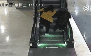 眼看就要摔下电梯
