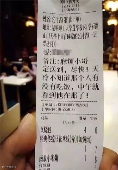原来这是某位学生为流浪汉点的